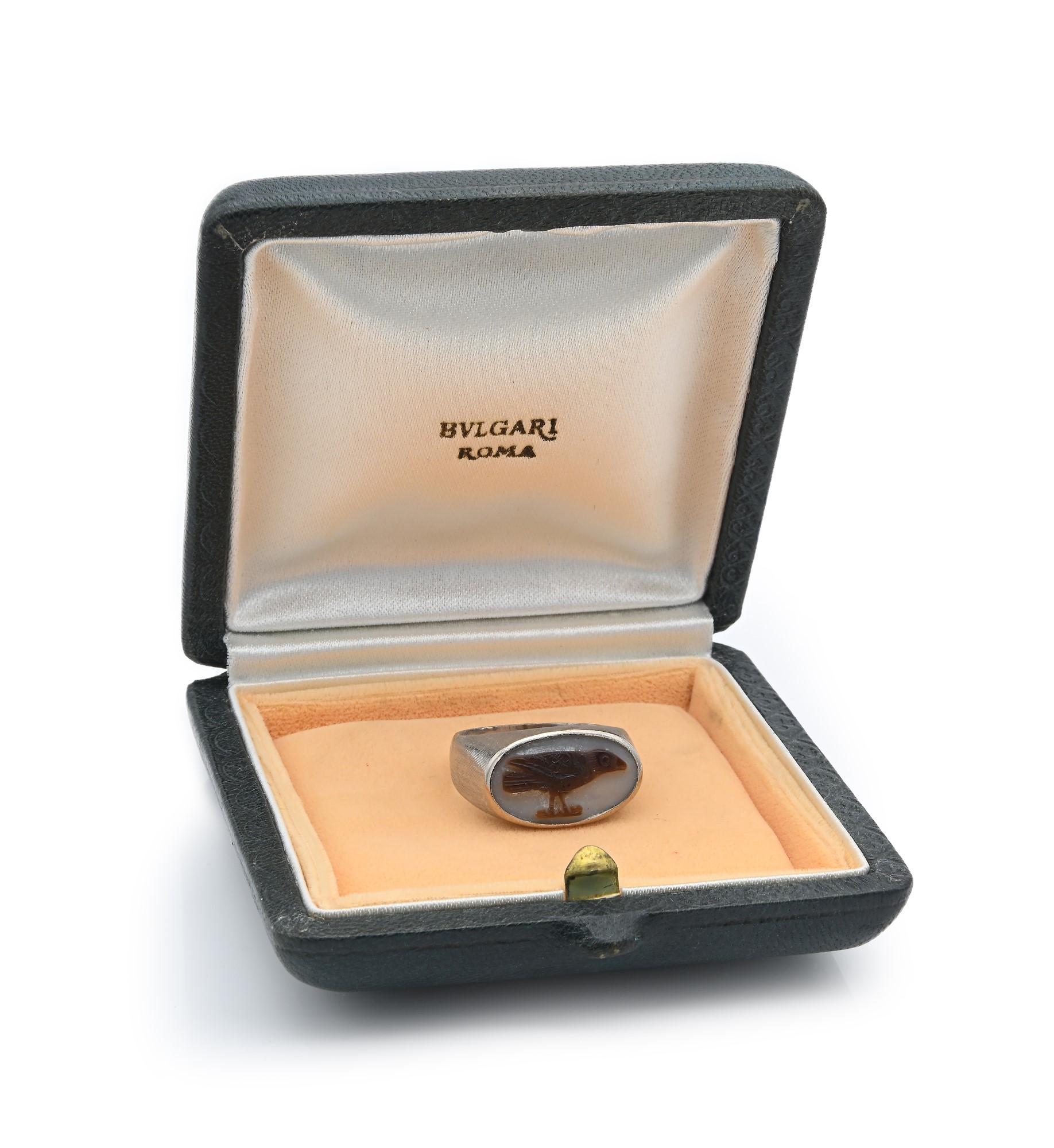 Anello in oro con cammeo su pietra dura entro astuccio Bulgari Oro bianco...