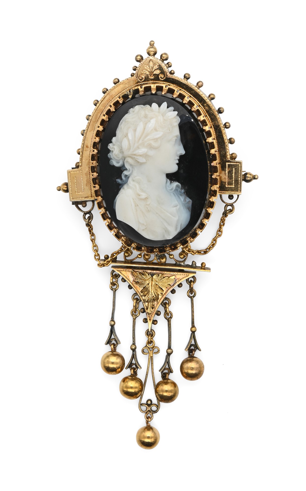Pendente vittoriano in oro e cammeo Oro giallo 750/000 cm 8x4