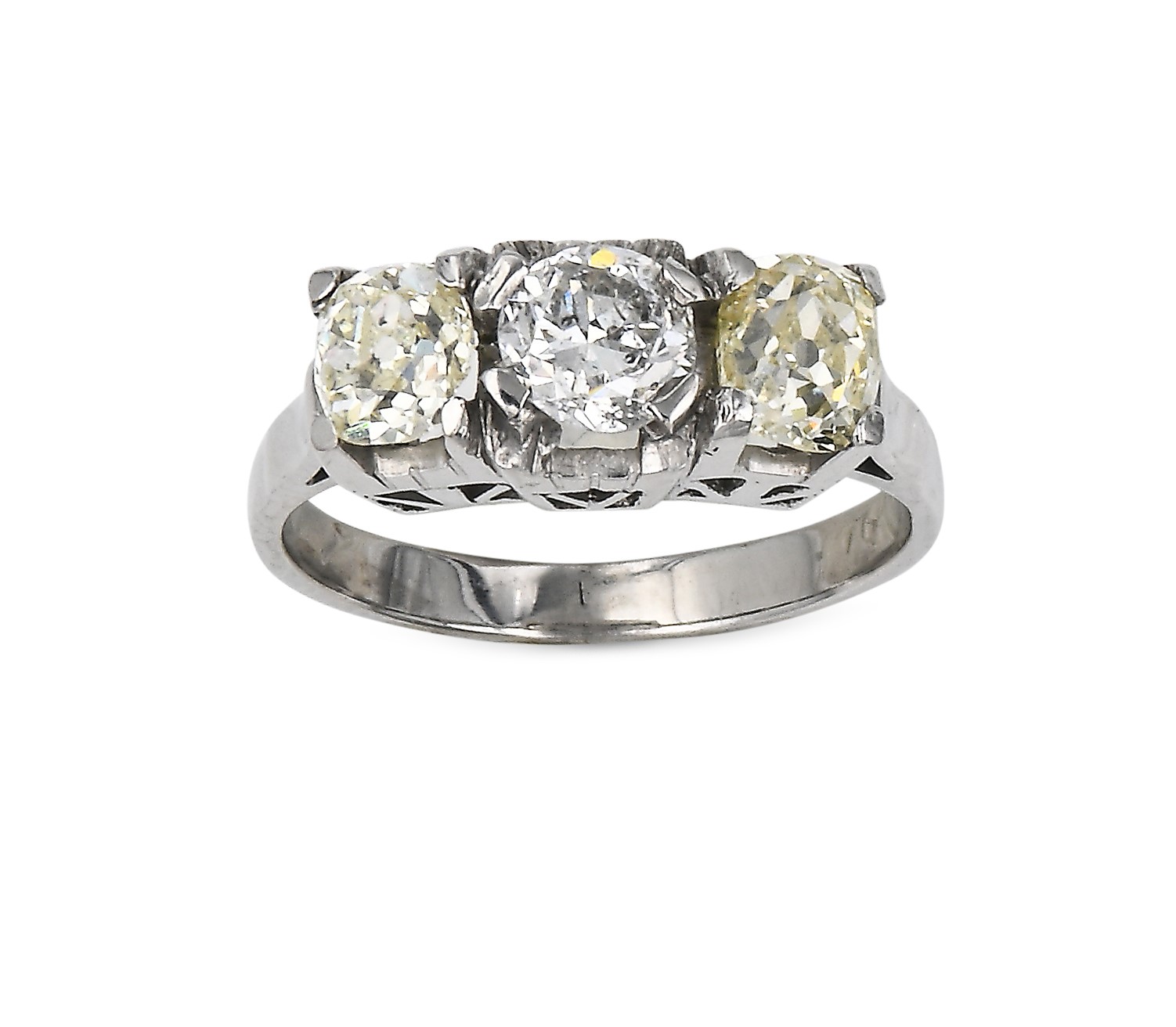 Anello antico in oro e diamanti Oro bianco 750/000. Diamanti in taglio antico ct. 2,20 ca.Peso complessivo gr. 4,40 Misura 17