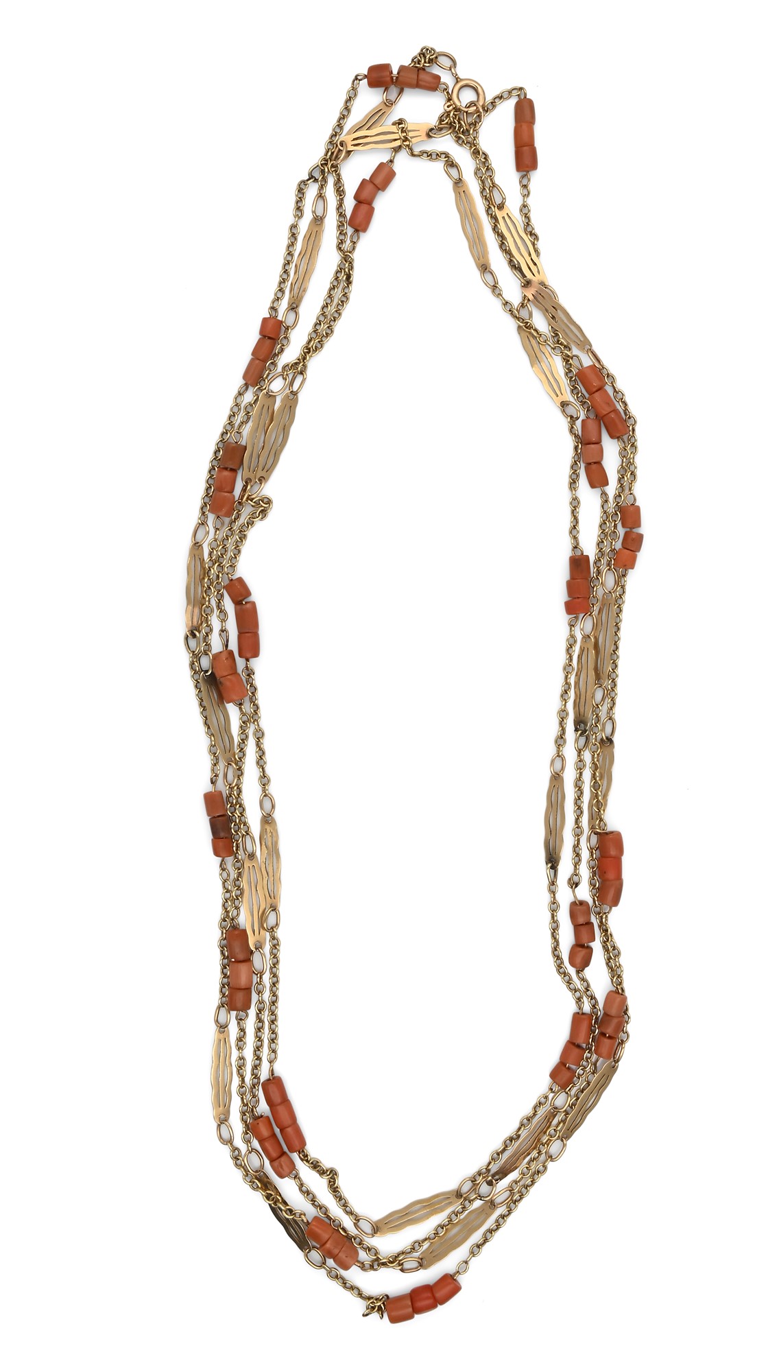 Lot 126 | Laccio in oro e corallo antico Oro giallo 585/1000. Peso complessivo gr. 19,70