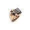Anello a ponte in oro, diamanti e rubini Oro a basso titolo, diamanti in taglio rotondo. Peso complessivo gr. 10,50 Misura 9