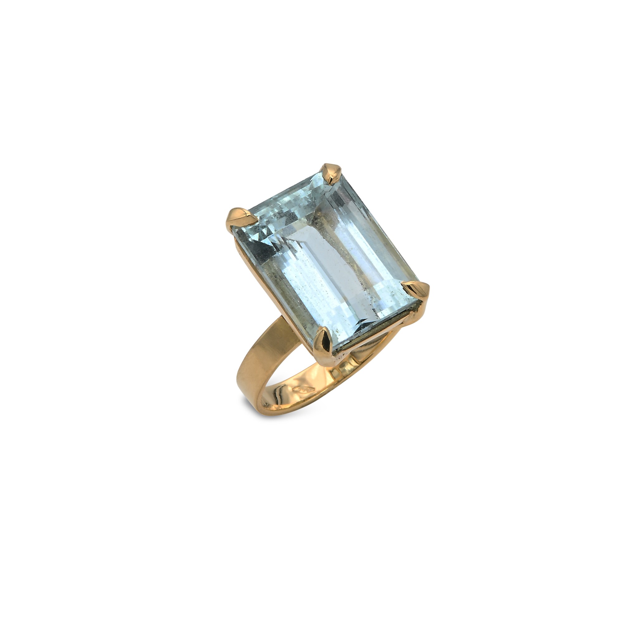 Anello in oro e acquamarina Oro giallo 750/000. Acquamarina ct. 15 ca. Peso...