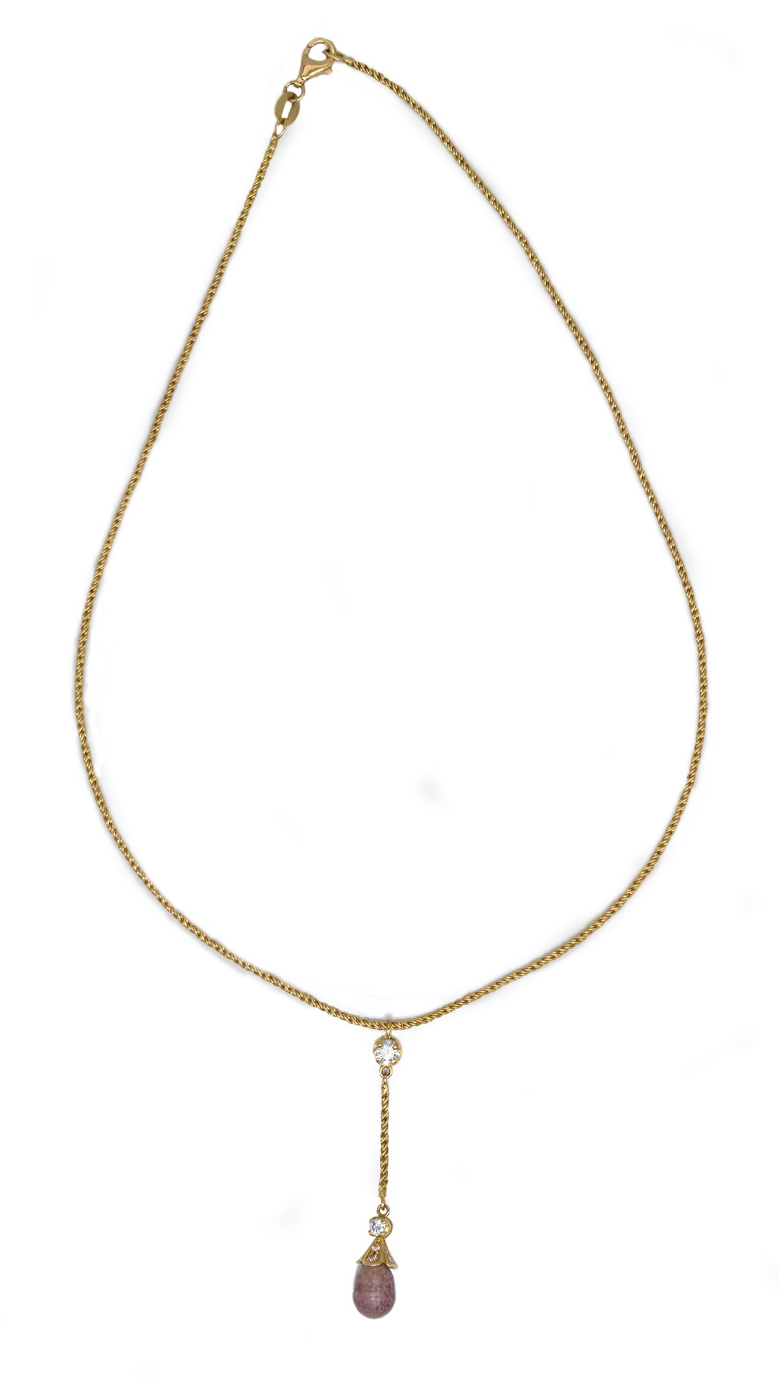 Pendente in oro, brillanti e perla Scallop Oro giallo 750/000. Peso complessivo gr 7,50. Perla naturale spontanea Scallop ct 3,09. Diamanti in taglio rotondo brillante ct 0,20 ca. , G, VVS. Corredato di certificazione gemmologica GIA n° 16140123 Lunghezza collana cm 39; lunghezza pendente cm 5