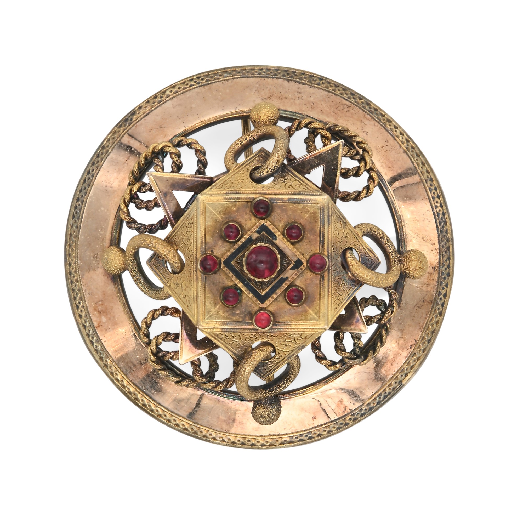 Spilla borbonica in oro e pietre rosse Oro a basso titolo, Peso gr 15,30
