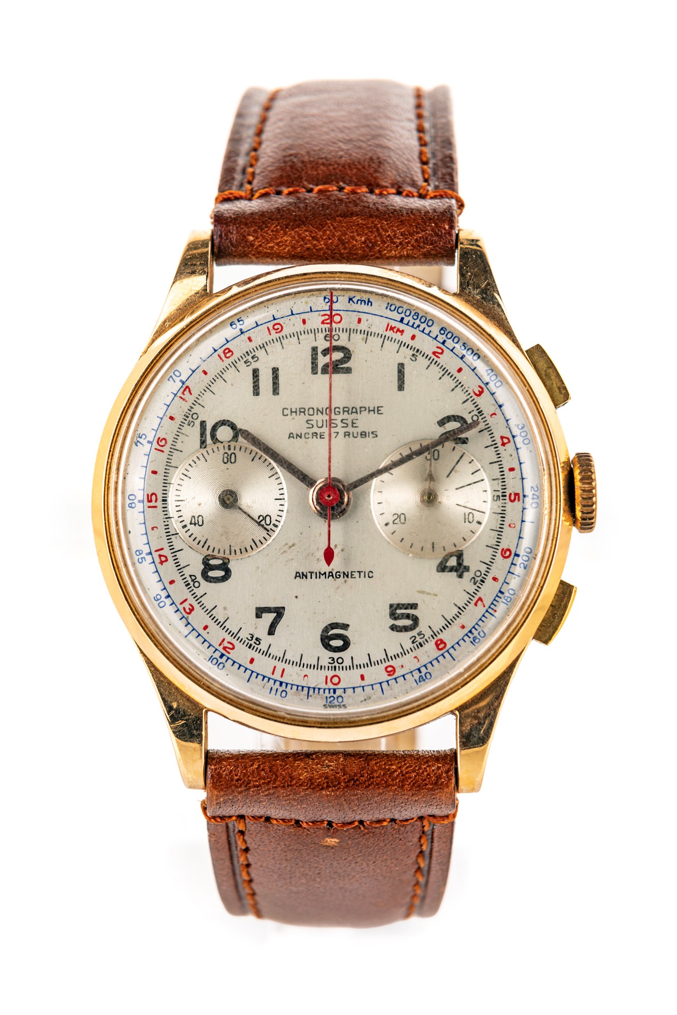 Orologio cronografo in oro Cronographe Suisse Oro giallo 750/000. n° 105-0,...