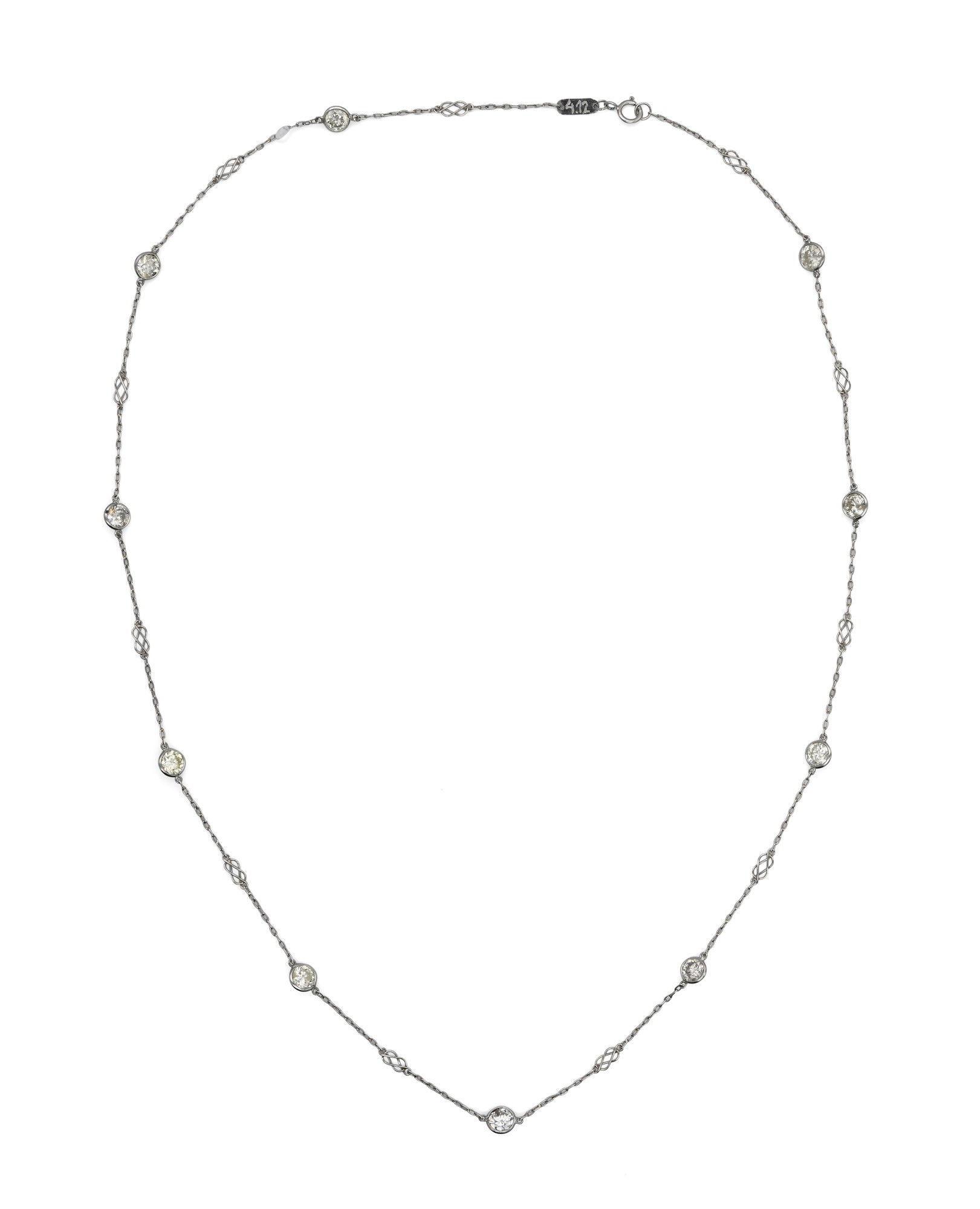 Catena in platino Platino 950/000. Diamanti in taglio rotondo ct. 4,20. Peso complessivo gr. 4,5. Lunghezza cm 50