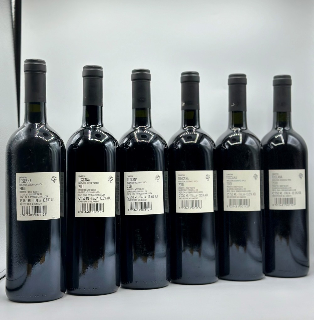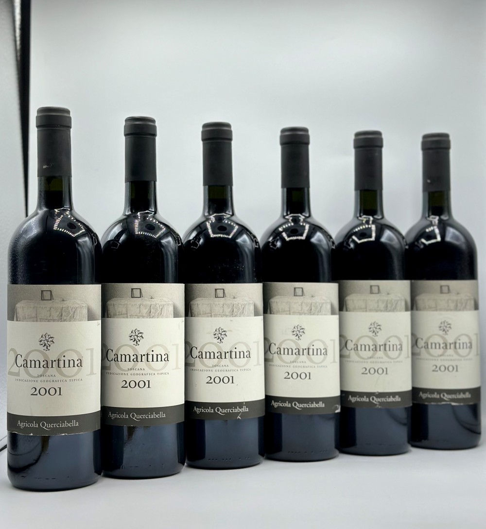 Italia-Toscana 0,75 Toscana, Camartina - 6 bottiglie (bt), annata 2001. Livello: entro il collo (WN). Condition report: etichetta e capsula in ottime condizioni.