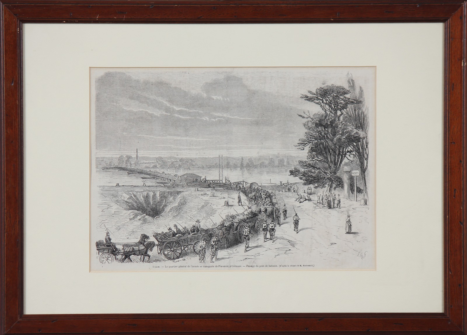 ANONIMO Le quarter general de l' armeè se transporte de Plaisance a Cremone. Stampa. Cm 33,00 x 23,00. . Cornice presente