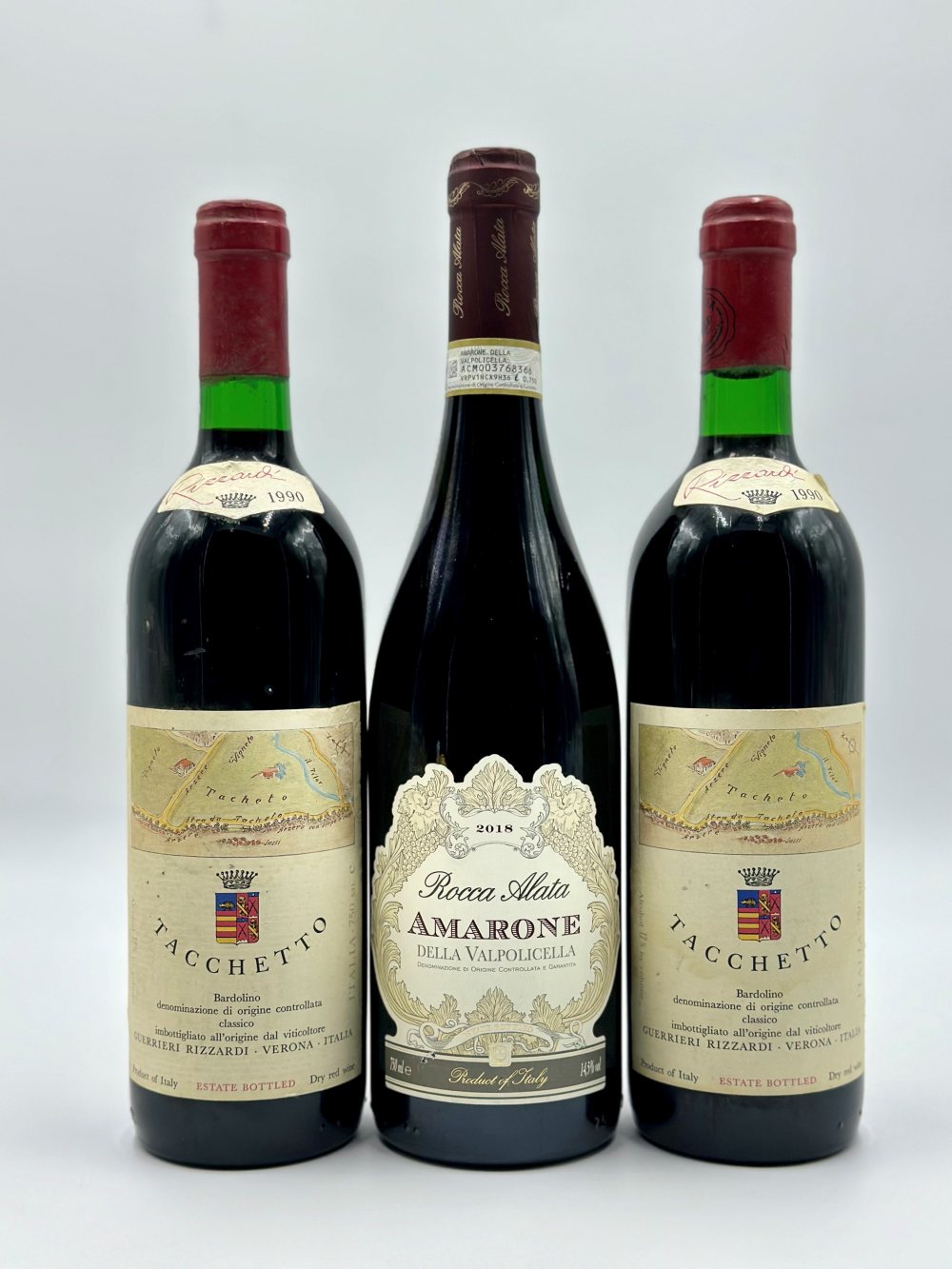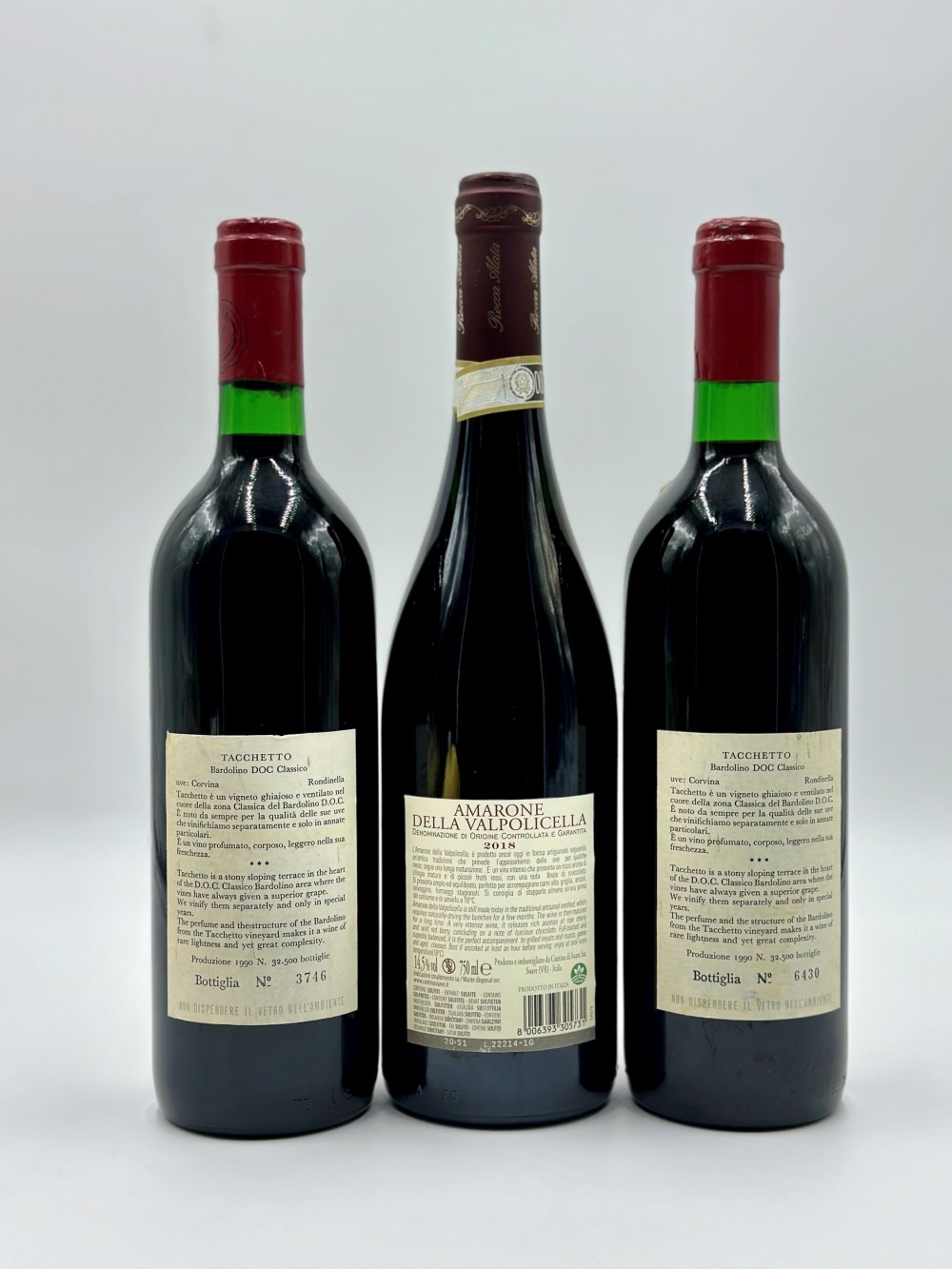Italia-Veneto 0,75 Selezione Veneto - 3 bottiglie (bt), annate 1990 e 2018. Livello : entro il collo (WN). Condition report : etichetta in perfette condizioni e capsula in ottime condizioni.
