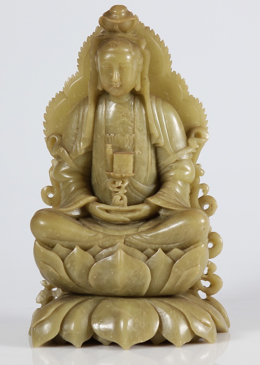 MANIFATTURA CINESE DEL XX SECOLO Buddha. pietra saponaria. Cm 12,50 x 21,00.