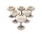 Sei coppe da champagne con steli scultorei in forma di albero con figura di fauno; coppa ornata da greca incisa, piede circolare altezza cm 12 - peso complessivo gr. 1230 argento