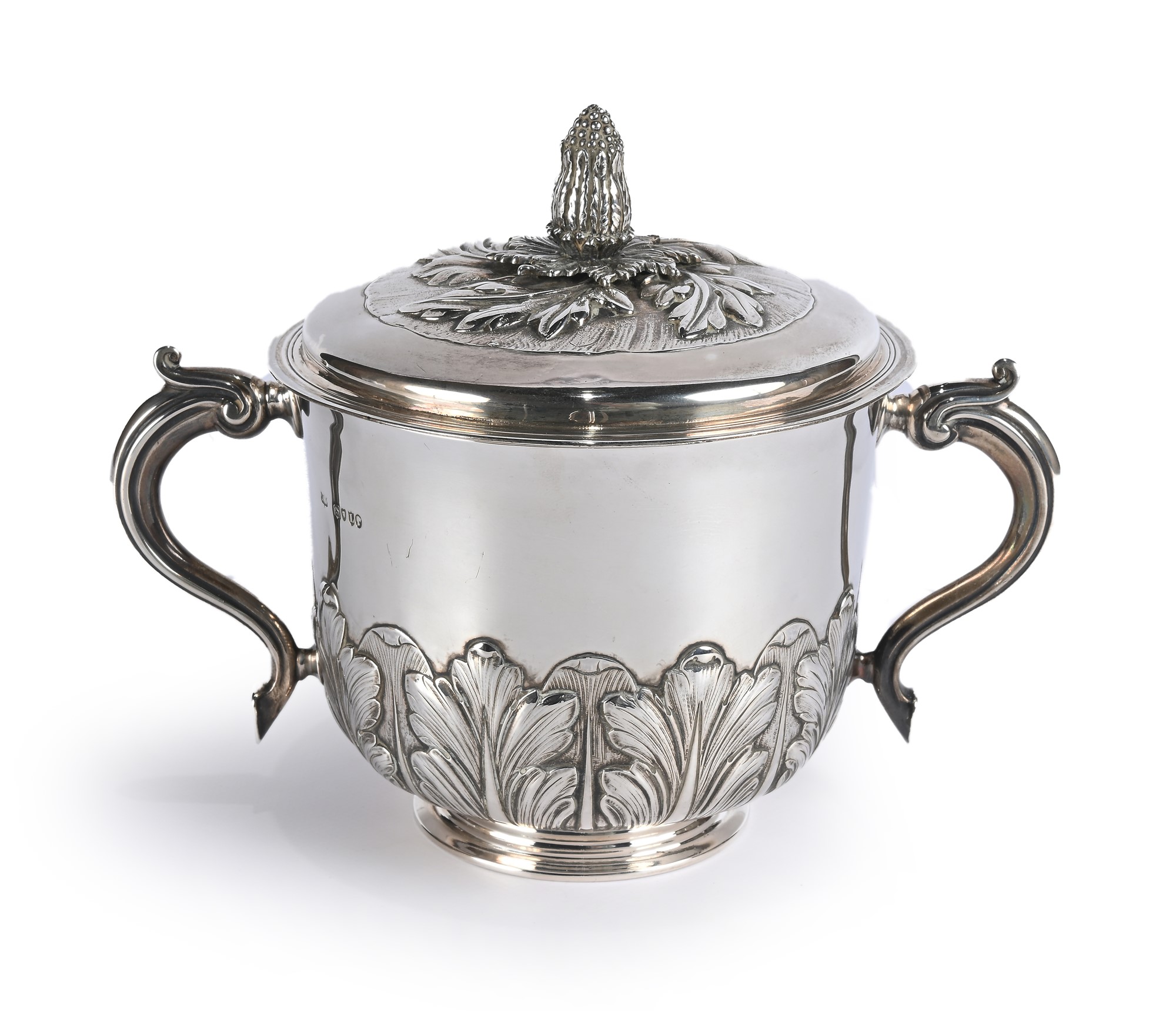 Lot 104 | Coppa biansata in argento con coperchio, Inghilterra corpo cilindrico calzato...