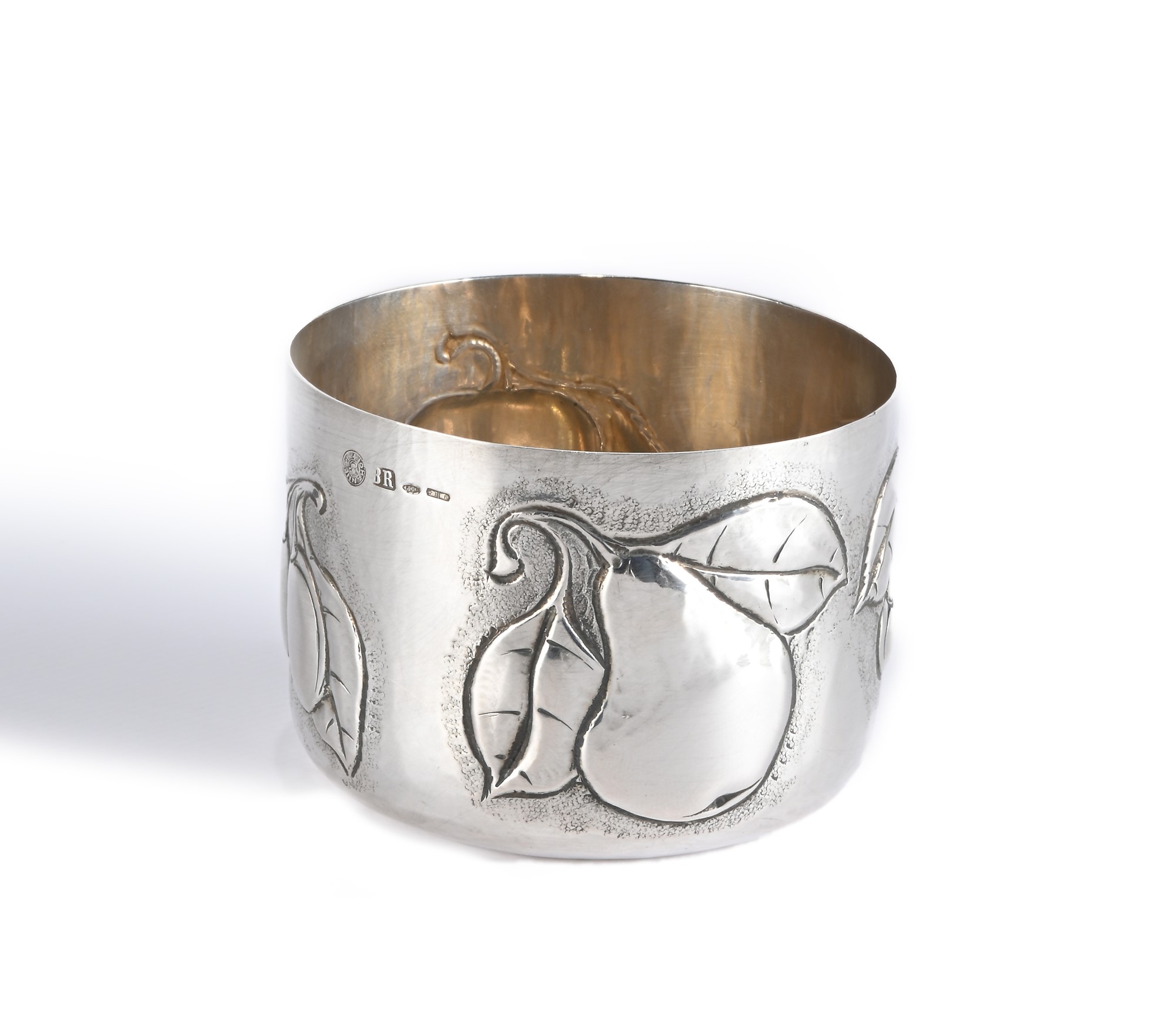 Bicchiere in argento, Firenze, Brandimarte con frutta sbalzata e dedica incisa "Ornella 1978" cm 6,5x8,7 - gr. 150