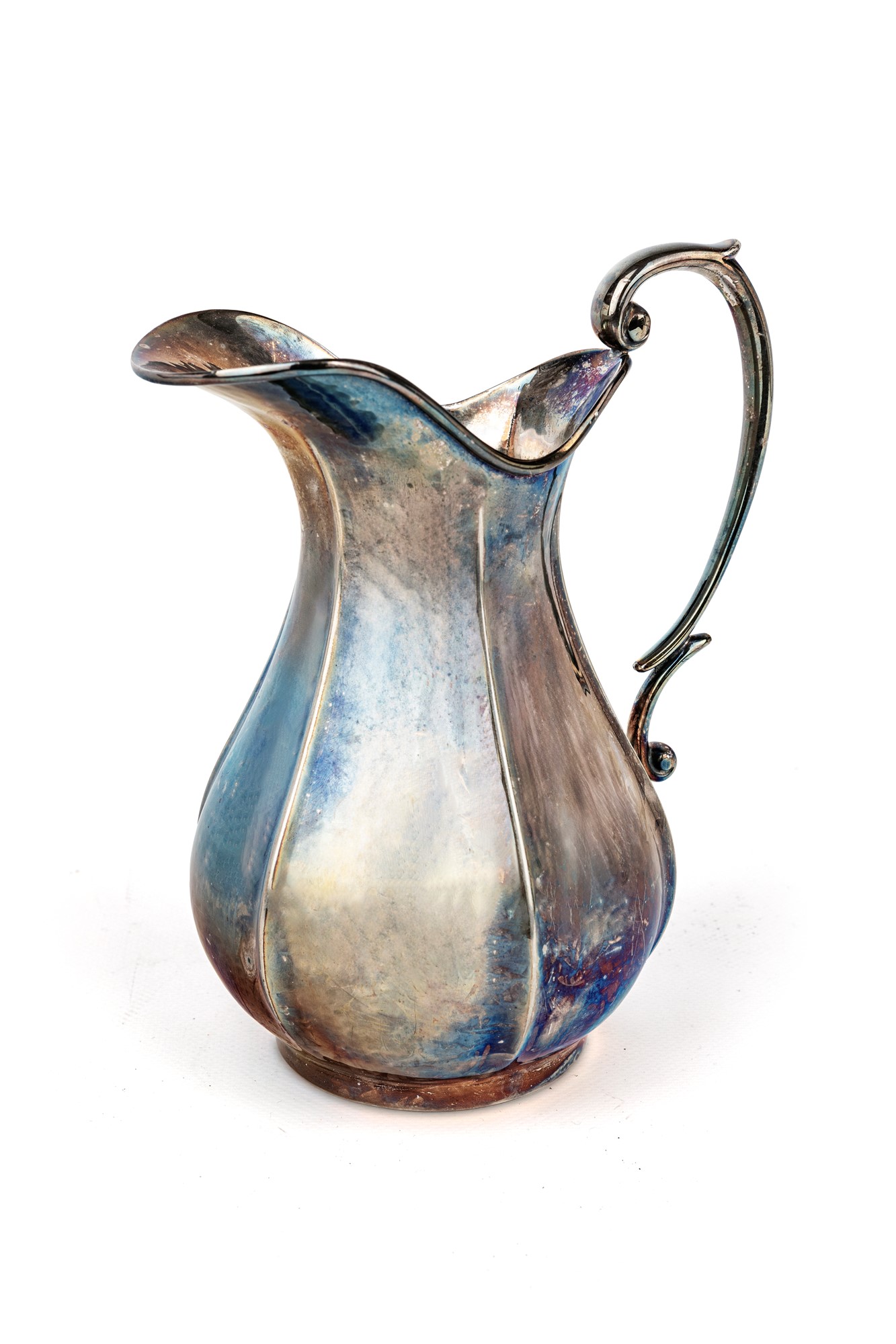 Brocca in argento corpo segnato da sottili nervature verticali, bocca...