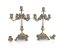 Coppia di candelabri a cinque luci fusto liscio dalla cui sommità si...