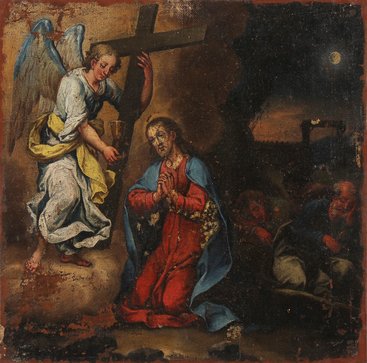 ARTISTA VENETO DEL XVII SECOLO Cristo nell'orto degli ulivi. Olio su tela . Cm 39,50 x 39,50.