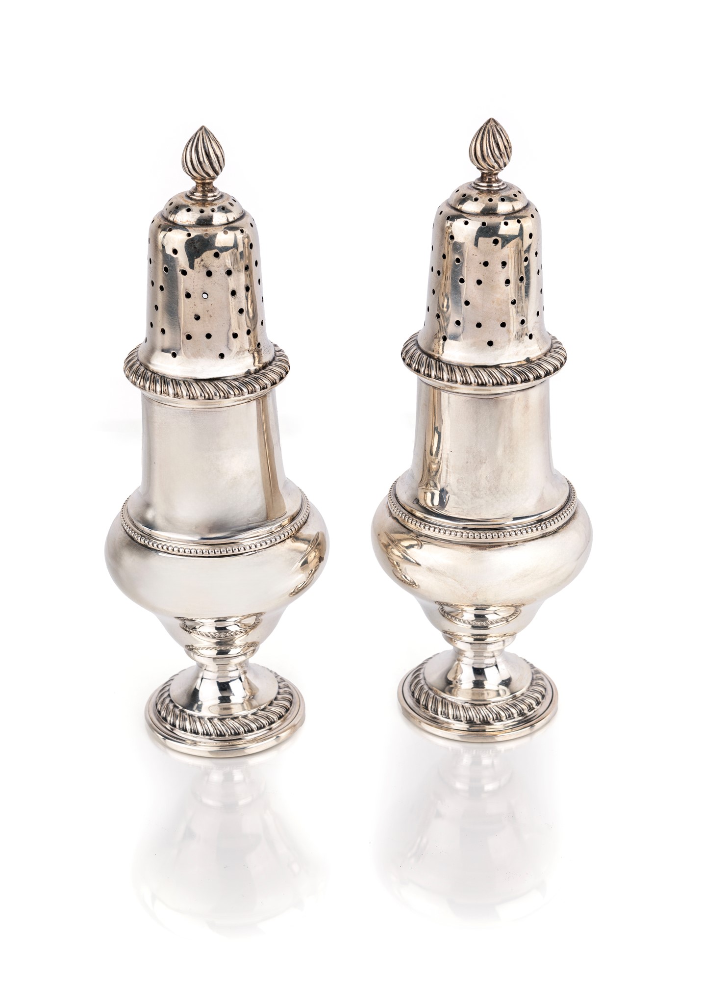 Coppia di spargizucchero, argentiere Settepassi lievi ammaccature altezza cm 18 - peso complessivo gr. 282 argento 925/000