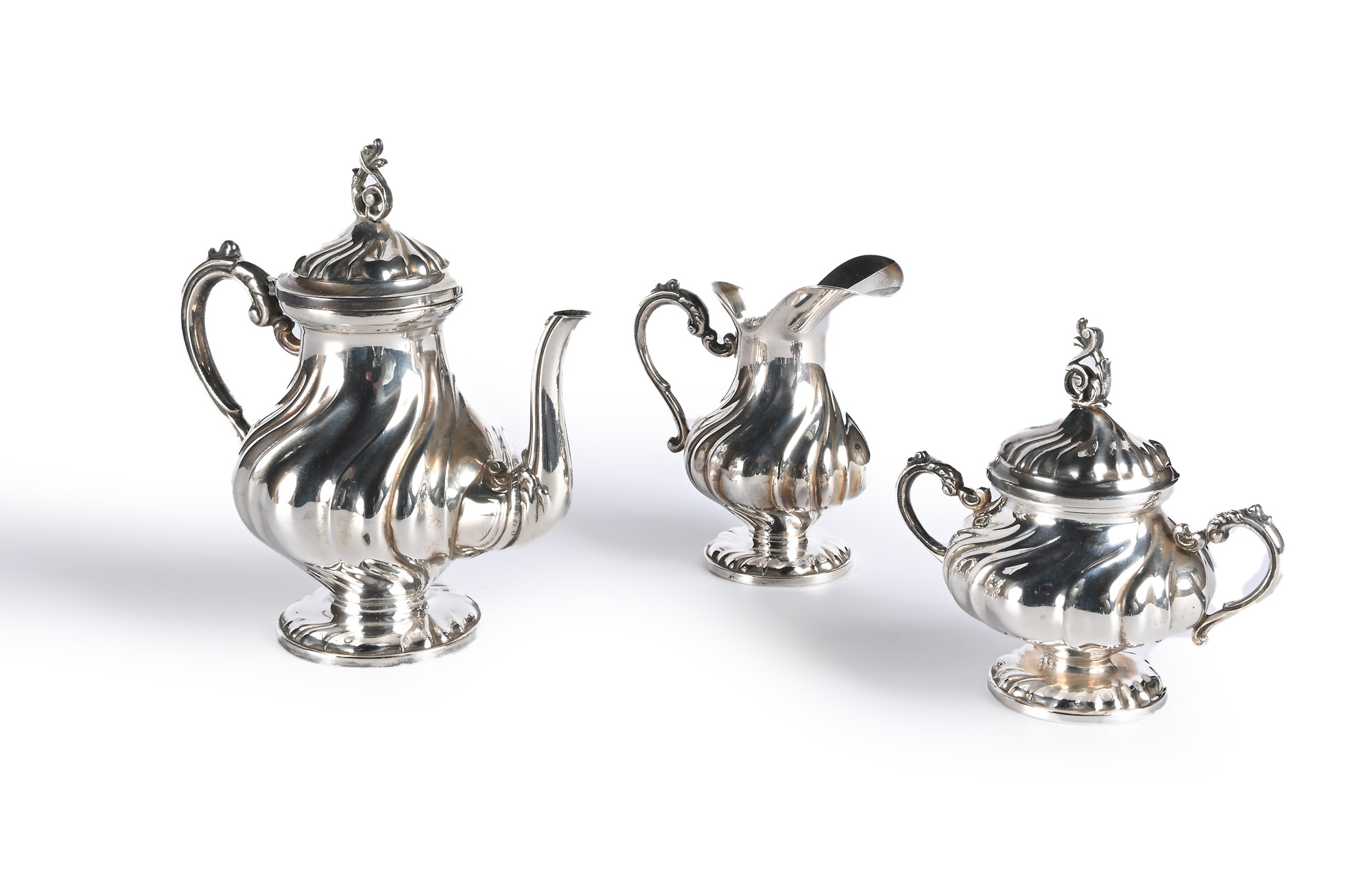 Servizio da caffè solitaire in argento composto da caffettiera, lattiera e...