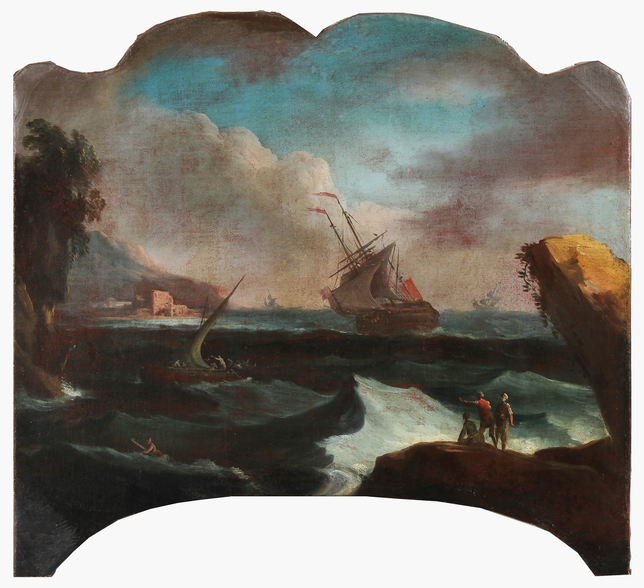 ARTISTA DEL XVIII SECOLO Nave in tempesta. Olio su tela . Cm 86,40 x 78,70. Scheda tecnica di restauro a cura di Roberto Cei.