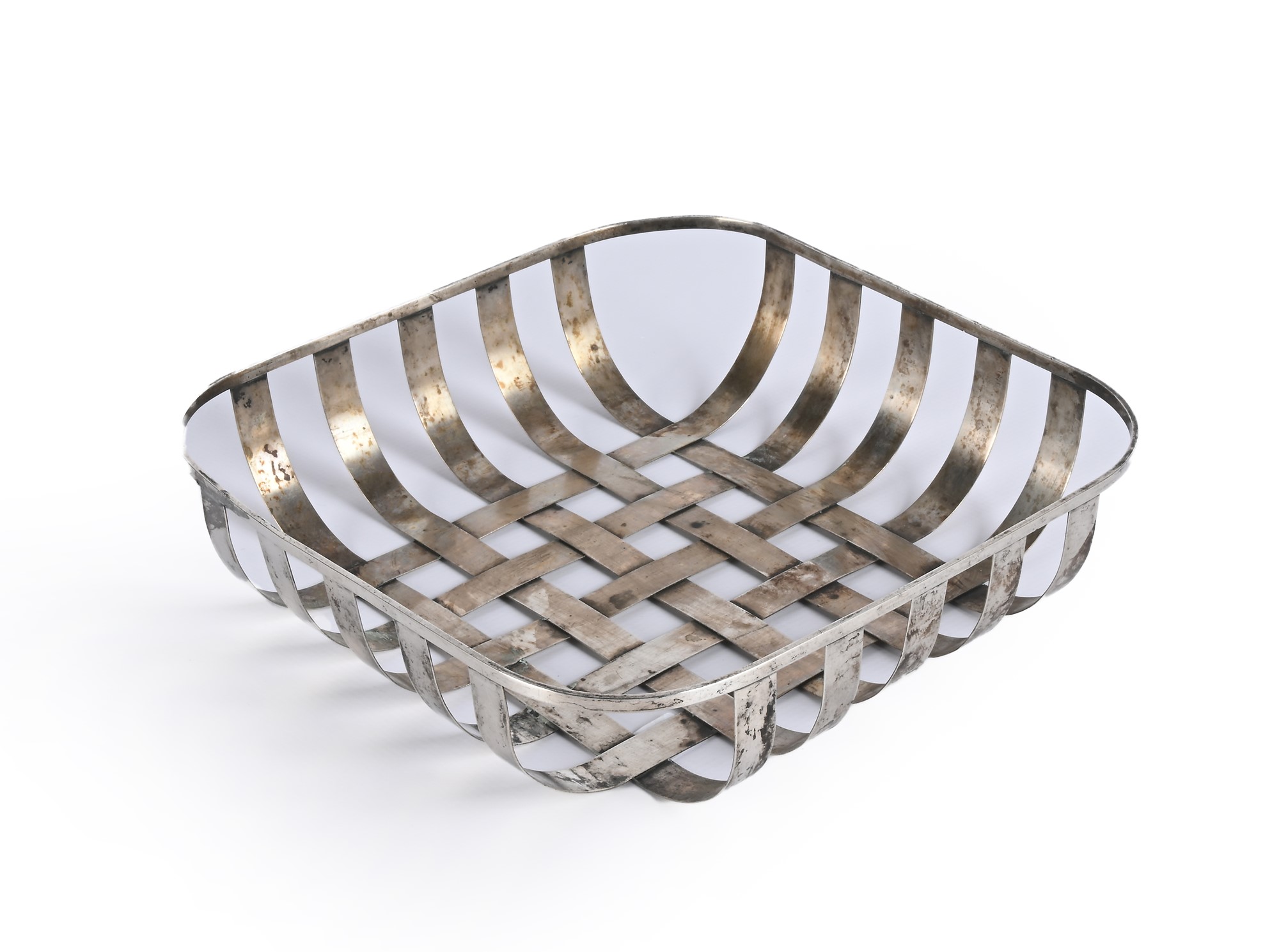 Cestino in argento di forma squadrata costituito da fasce intrecciate cm...