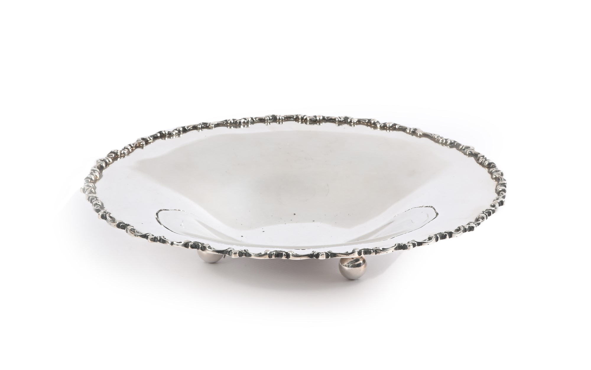 Lot 179 | Alzatina in argento 800/000 vaschetta circolare poggiante su tre piedini a...