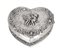 Porta gioie in argento a forma di cuore, Milano Anni Sessanta decorato sul coperchio da figure di amorino danzanti; tutt'intono una cornice di cartigli, volute e corolle, motivi decorativi ripresi, differentemente, lungo la fascia, emergenti dal fondo bulinato cm 2,5x9x8 - gr. 170