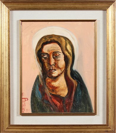 BARUCCO GIACOMO (n. 1852) Madonna. Olio su tela . Cm 40,00 x 50,00. Firma in...