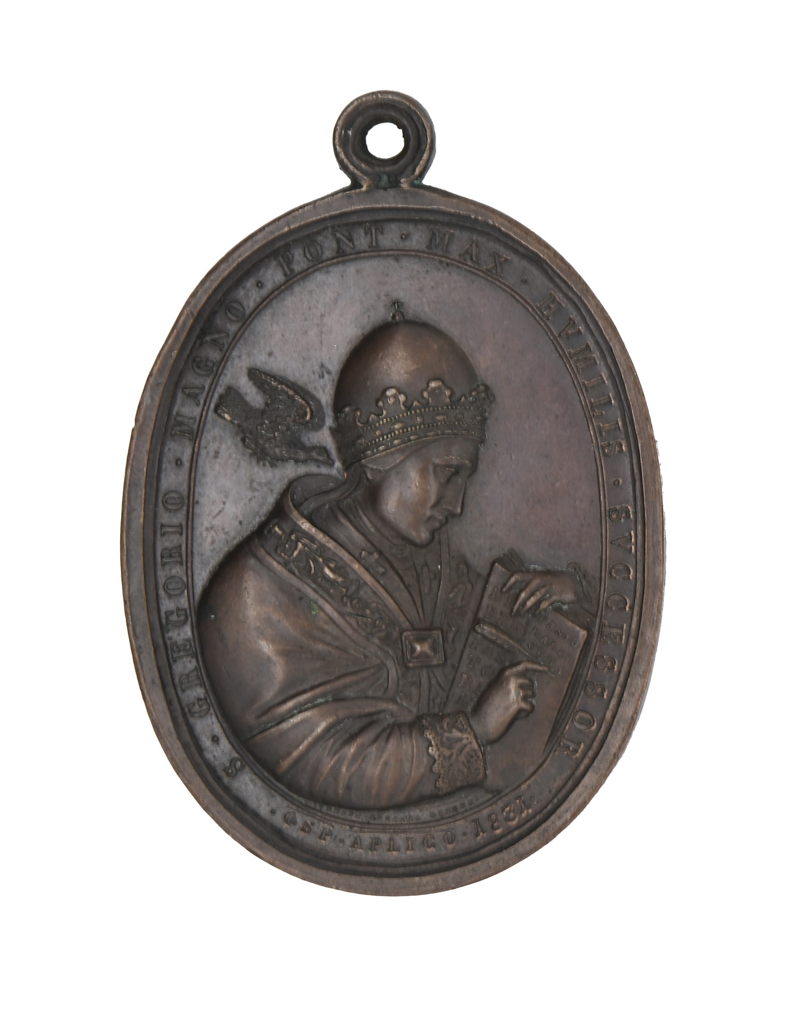 Stato Pontificio - Gregorio XVI - Medaglia Straordinaria ovale in bronzo per l'Ospizio di San Michele a Ripa Grande in Roma, datata 1831 e firmata Giuseppe Cerbara. D/ San Gregorio Magno con triregno e piviale a destra mentre scrive con dietro la colomba dello Spirito Santo S•GREGORIO•MAGNO•PONT•MAX•HUMILIS•SVCCESSOR sotto GIVSEPPE•CERBARA•DIRESSE• OSP•APLICO•1831• R/ San Romualdo seduto predica a cinque discepoli S. ROMVALDO•ABBATI•DEVOTVS•FILIVS•GREGORIVS•XVI in esergo GIVSEPPE CERBARA Peso gr. 83,20 cm 47x61 con appiccagnolo 47x70