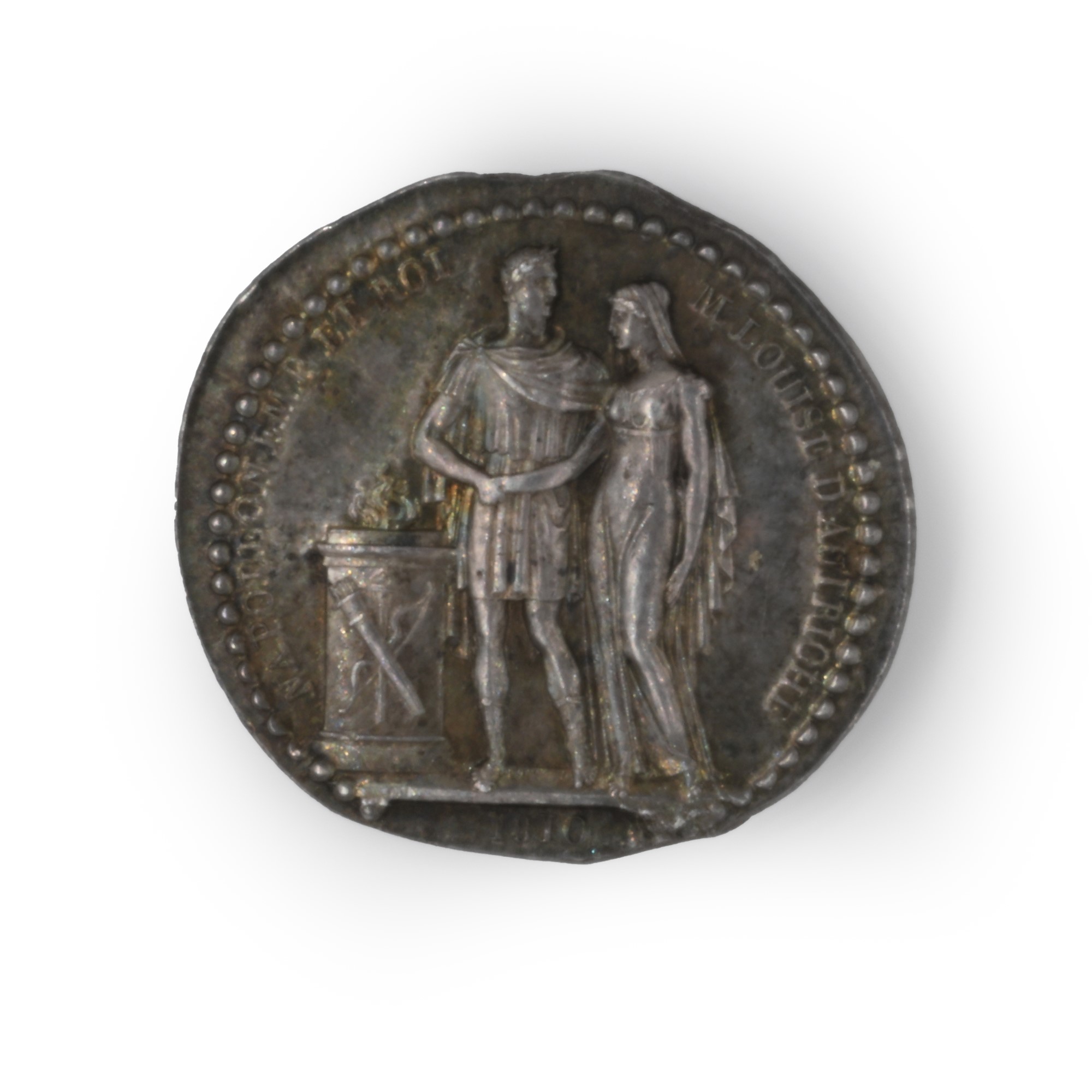 Regno di Francia - Napoleone I imperatore dei francesi e re d’Italia - Medaglia in argento per il matrimonio con Maria Luigia d’Austria D/ Teste accollate di Napoleone e Maria Luigia ANDRIEU F. R/ I due sovrani si stringono la mano accanto ad un’ara accesa NAPOLEON EMP ET ROI M LOUISE D’AUTRICHE 1810 Peso gr. 1,70 Diametro mm 15