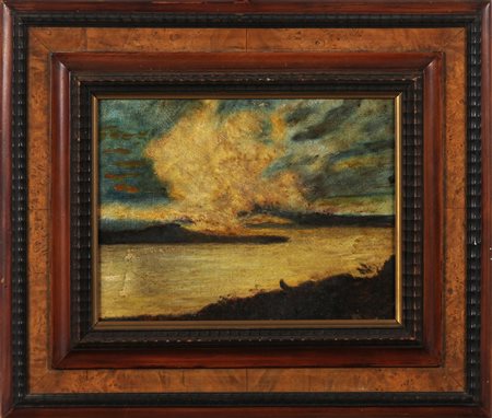 ANONIMO Paesaggio. Olio su cartone telato. Cm 39,60 x 29,60. . Cornice presente