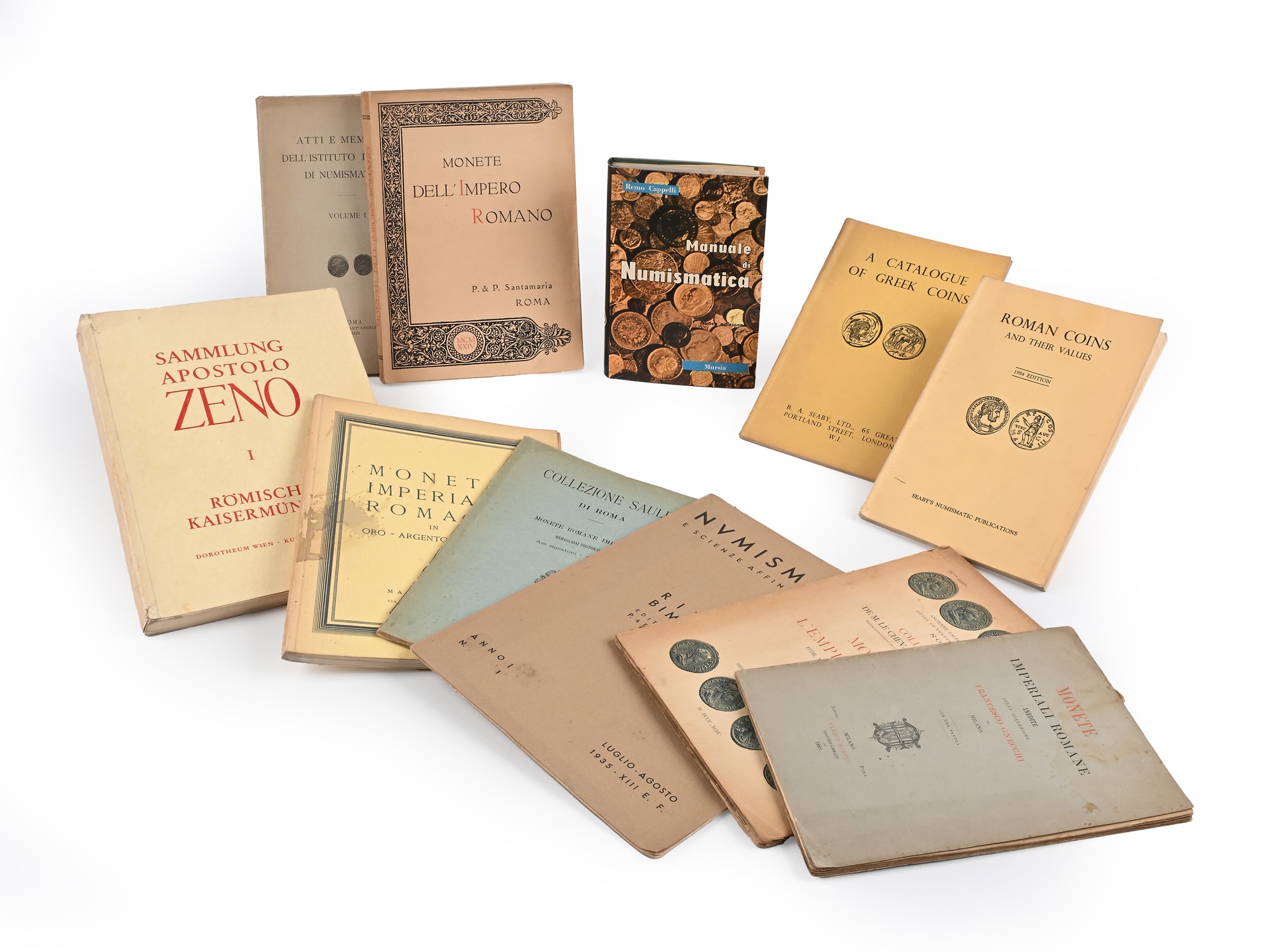 - Monete Imperiali Romane inedite della collezione Francesco Gnecchi di Milano, Hoepli Milano 1880; - H.A.Seaby, Roman Coins and their Values, 1954 Edition Londra; - Gilbert Askew, A Catalogue of greek coins, Londra 1951; ed altri 8 volumi di argomento numismatico e cataloghi d'asta
