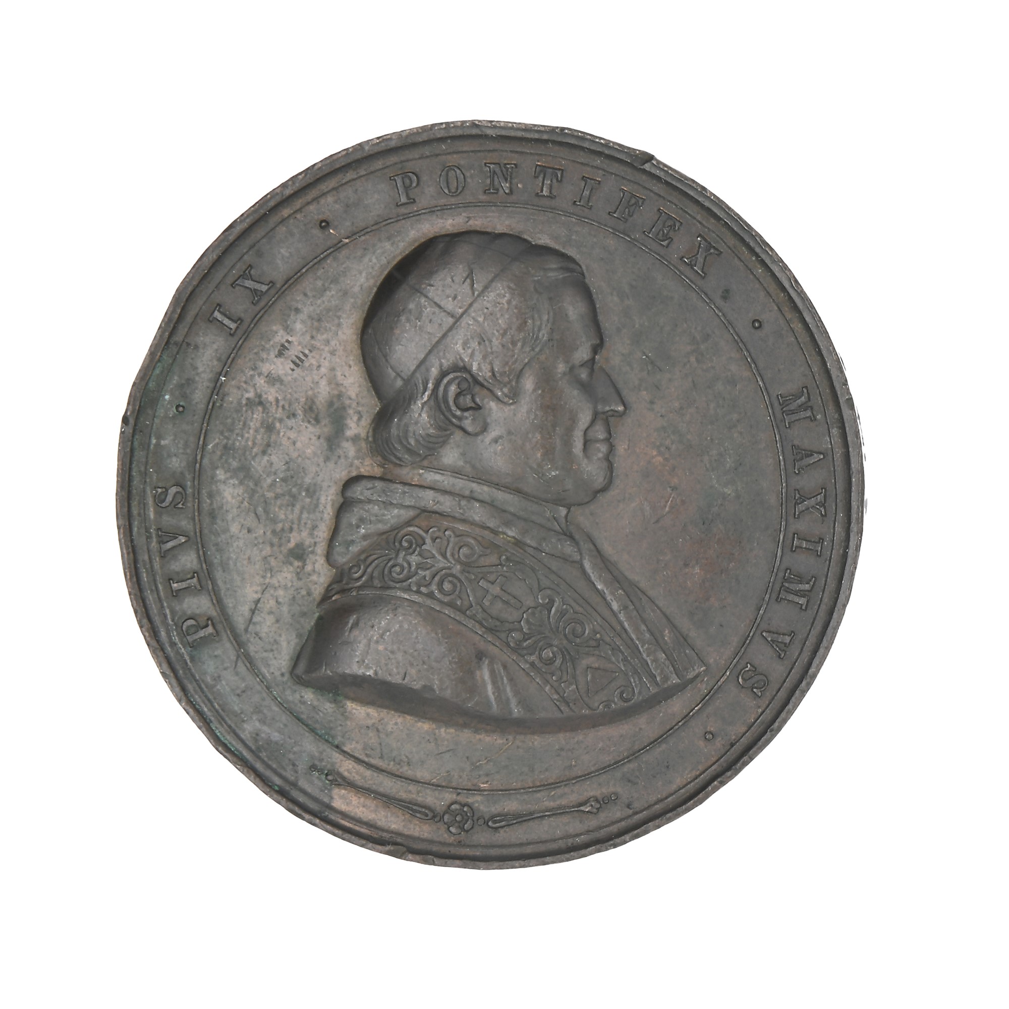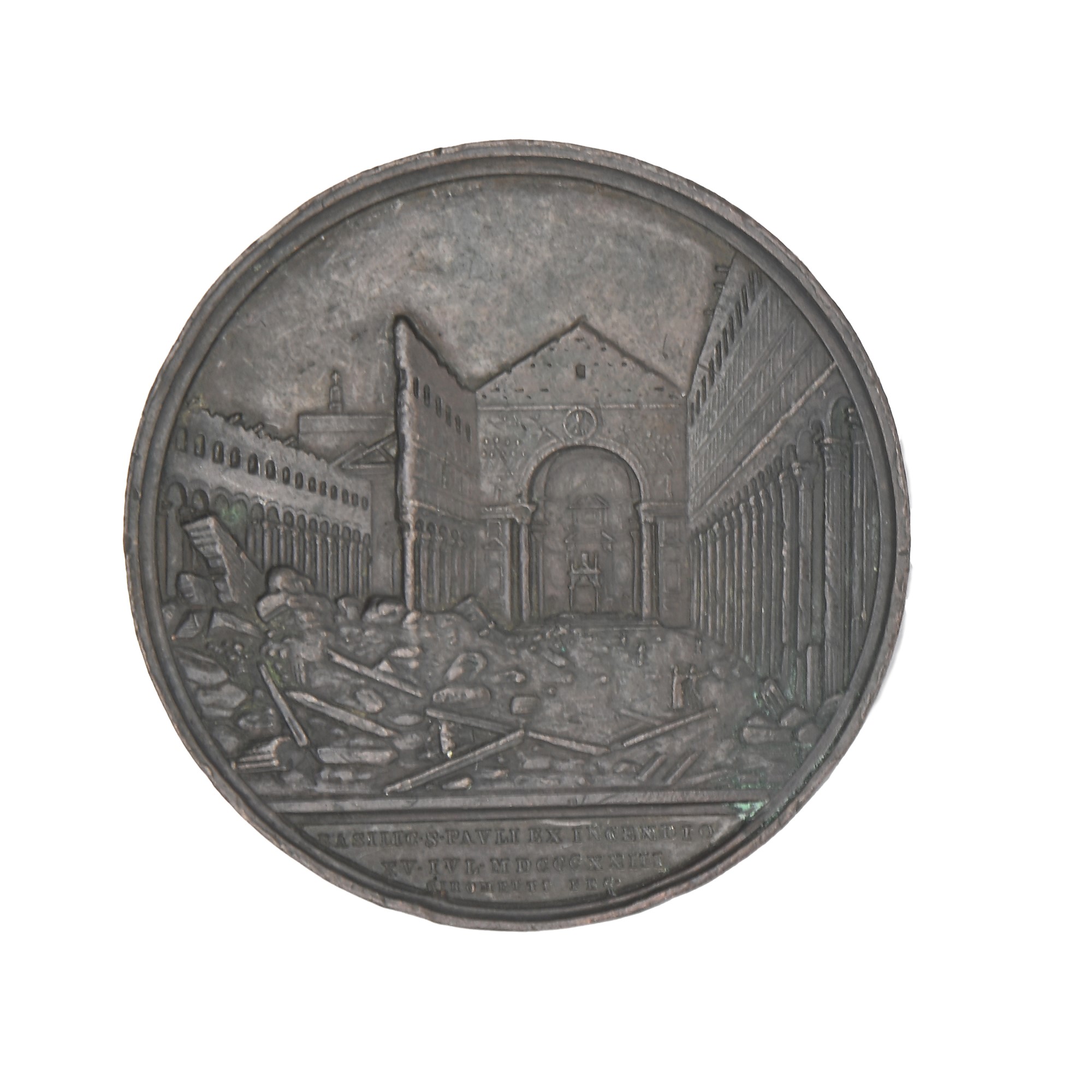 Stato Pontificio - Pio IX - Medaglia straordinaria in bronzo del 1858 commemorativa della ricostruzione della Basilica di San Paolo a Roma D/ busto del Papa con mozzetta e stola R/ La basilica di S. Paolo distrutta dall'incendio BASILIC S PAVLI EX INCENDIO XV IVL MDCCCXXIII Peso gr. 63,50 Il rovescio si riferisce all'incendio della basilica di S. Paolo del 1823. La basilica fu completamente riedificata nel 1854, anno IX del pontificato di Pio IX. Bart. SD-43; RZ664. Diametro mm 51