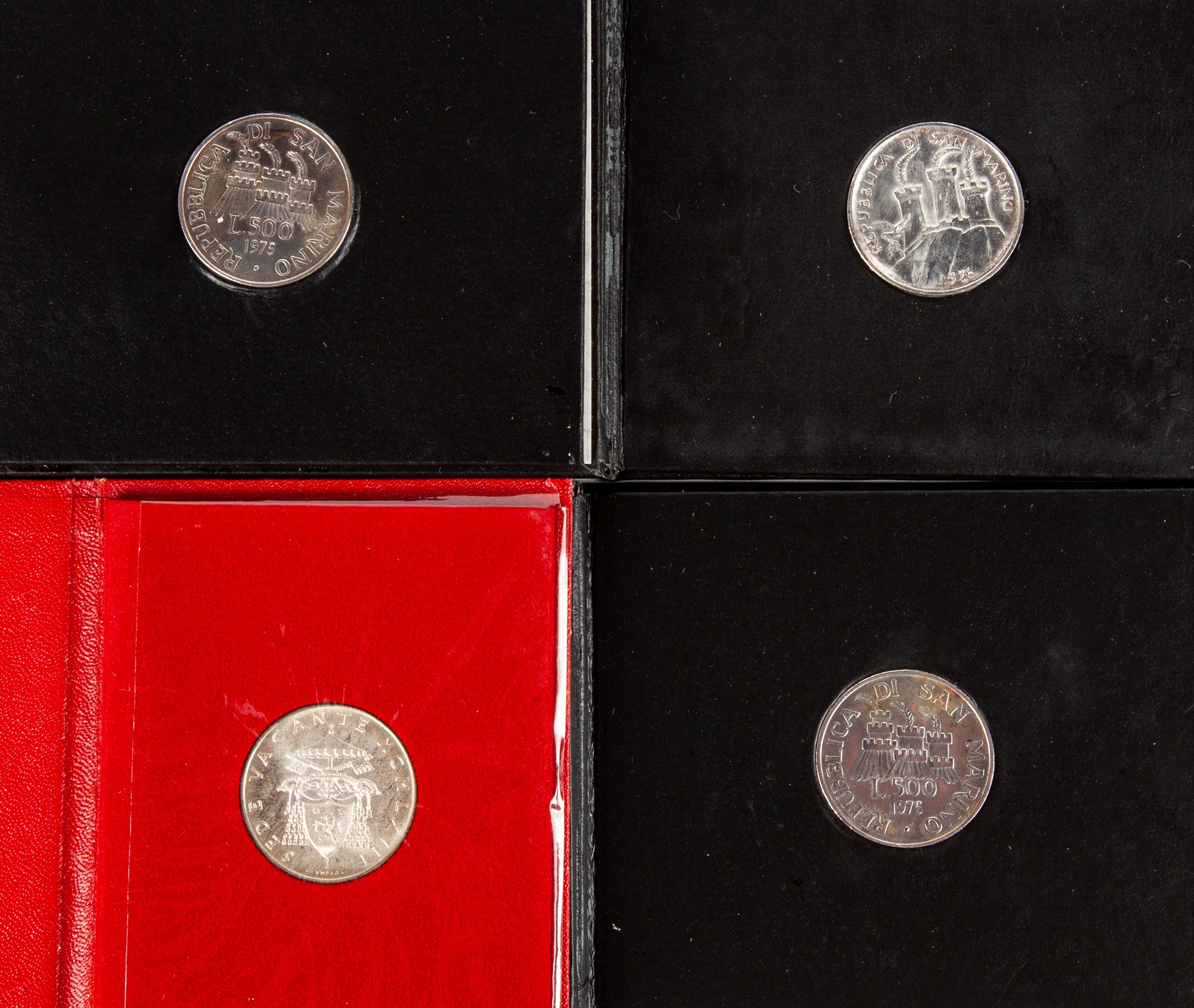 Lotto di monete: 7 pezzi da 500 Lire e 2 serie complete San Marino; 500 Lire Sede Vacante 1963 Città del Vaticano
