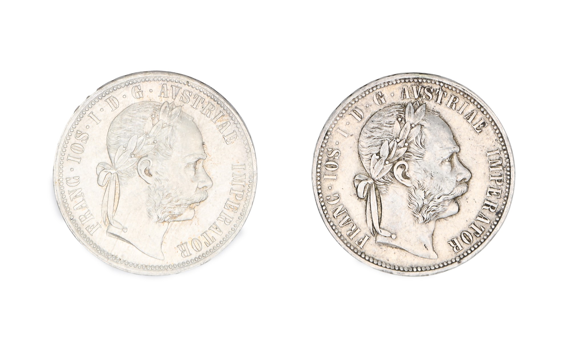 2 monete da 1 Fiorino 1878, 1879 Vienna Francesco Giuseppe I Impero Asburgico