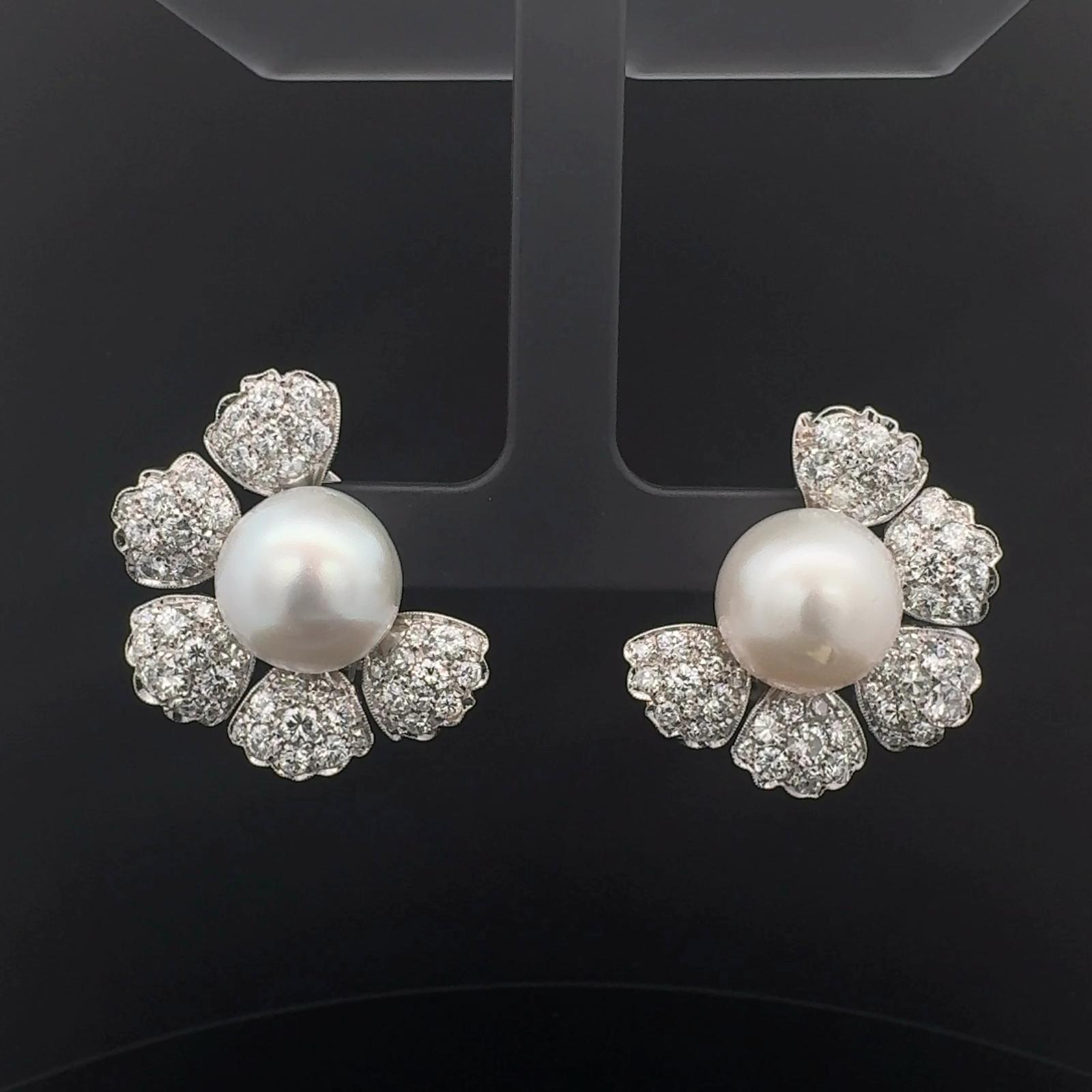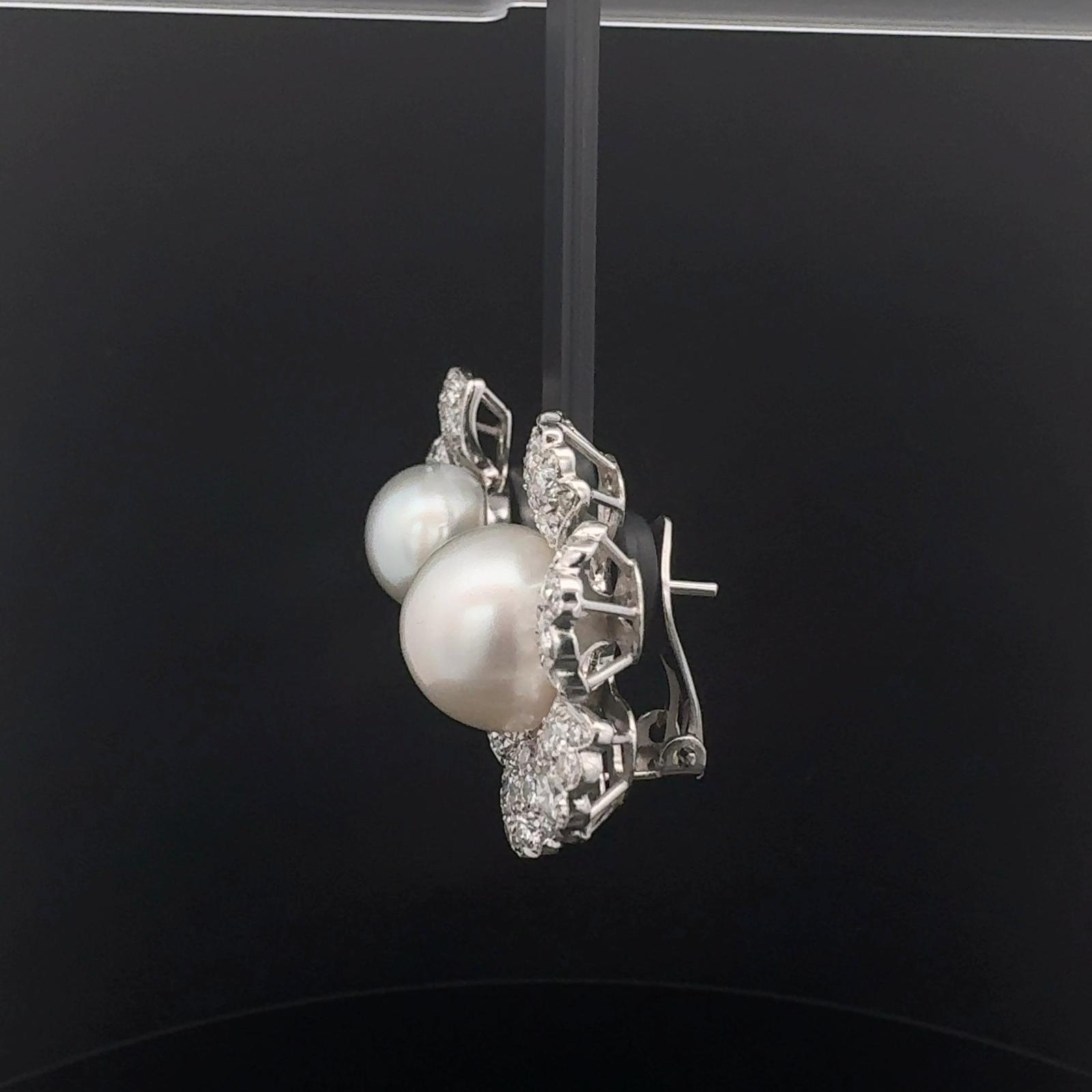 Orecchini in oro 18k 20.2gr con perle e diamanti per 4 ct circa