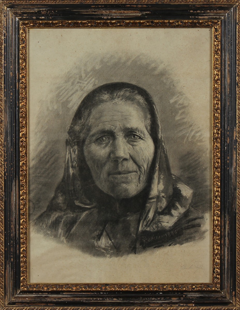 PASINI EMILIO (1872 - 1953) Ritratto femminile. 1886. Carboncino su carta. Cm...