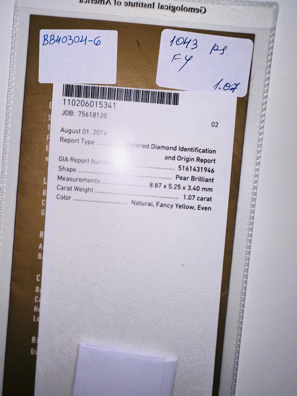 DIAMANTE FANCY COLOR 1,07 CARATI COLORE GIALLO TAGLIO PERA - CERTIFICATO GIA - BB40304-6