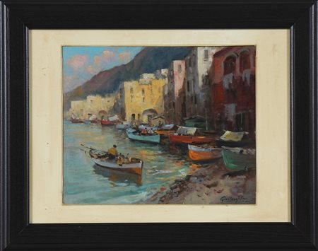 GIORDANO FELICE (1880 - 1964) Marina di Capri. Olio su tavola. Cm 30,00 x 24,50. Firma in basso a destra. Cornice presente