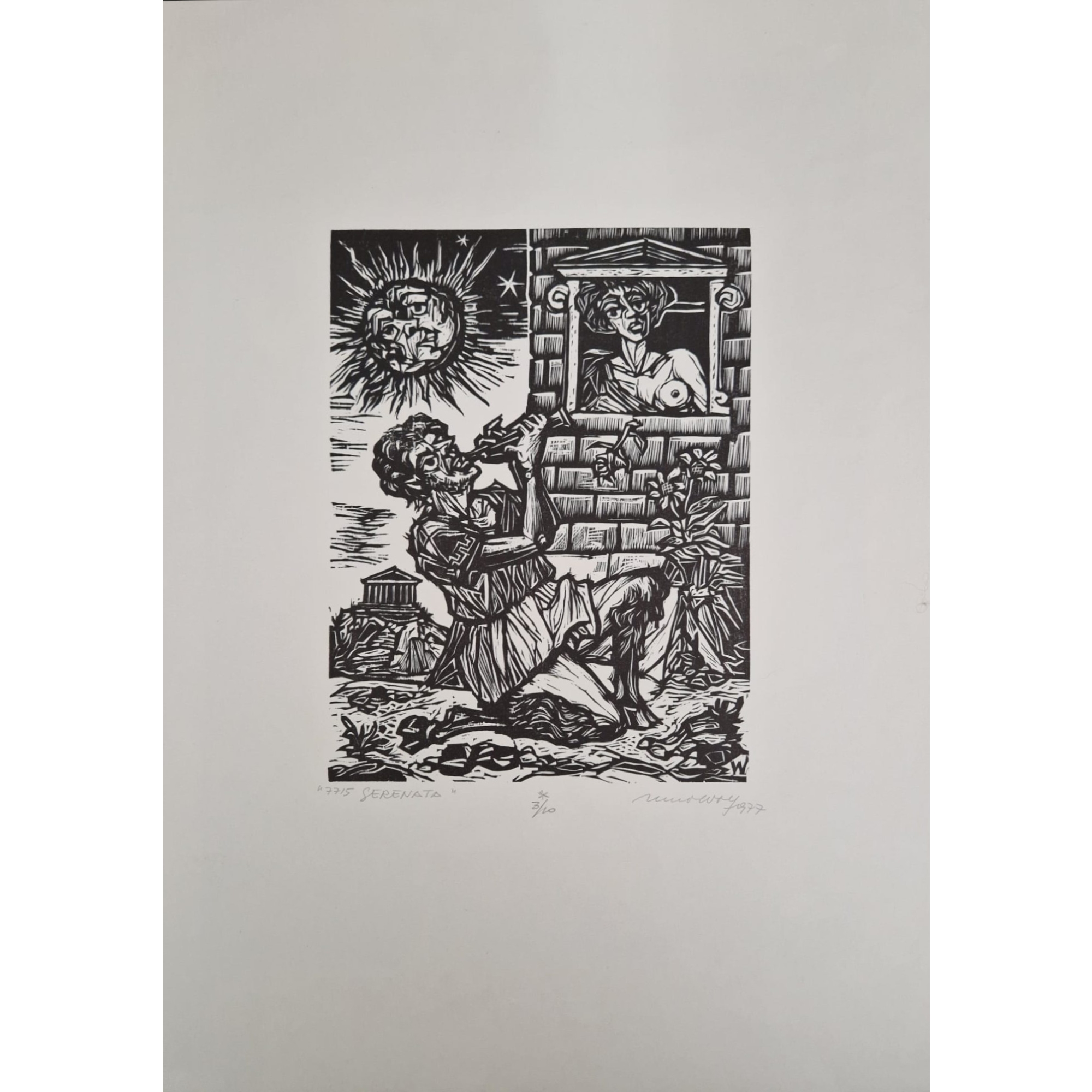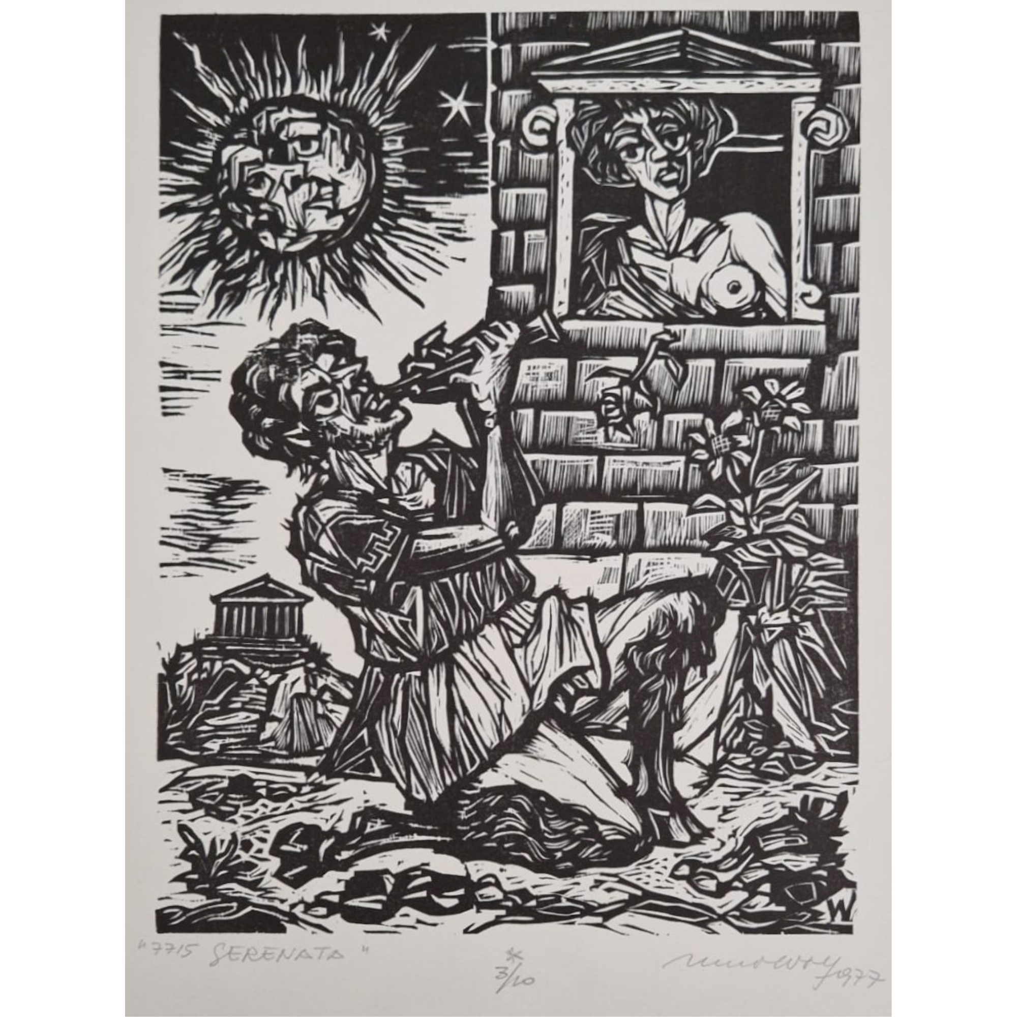 Remo Wolf, Coppia xilografie: Canto d'amore (1979) firmato in basso a dx; Serenata (1977) firmato in basso a dx