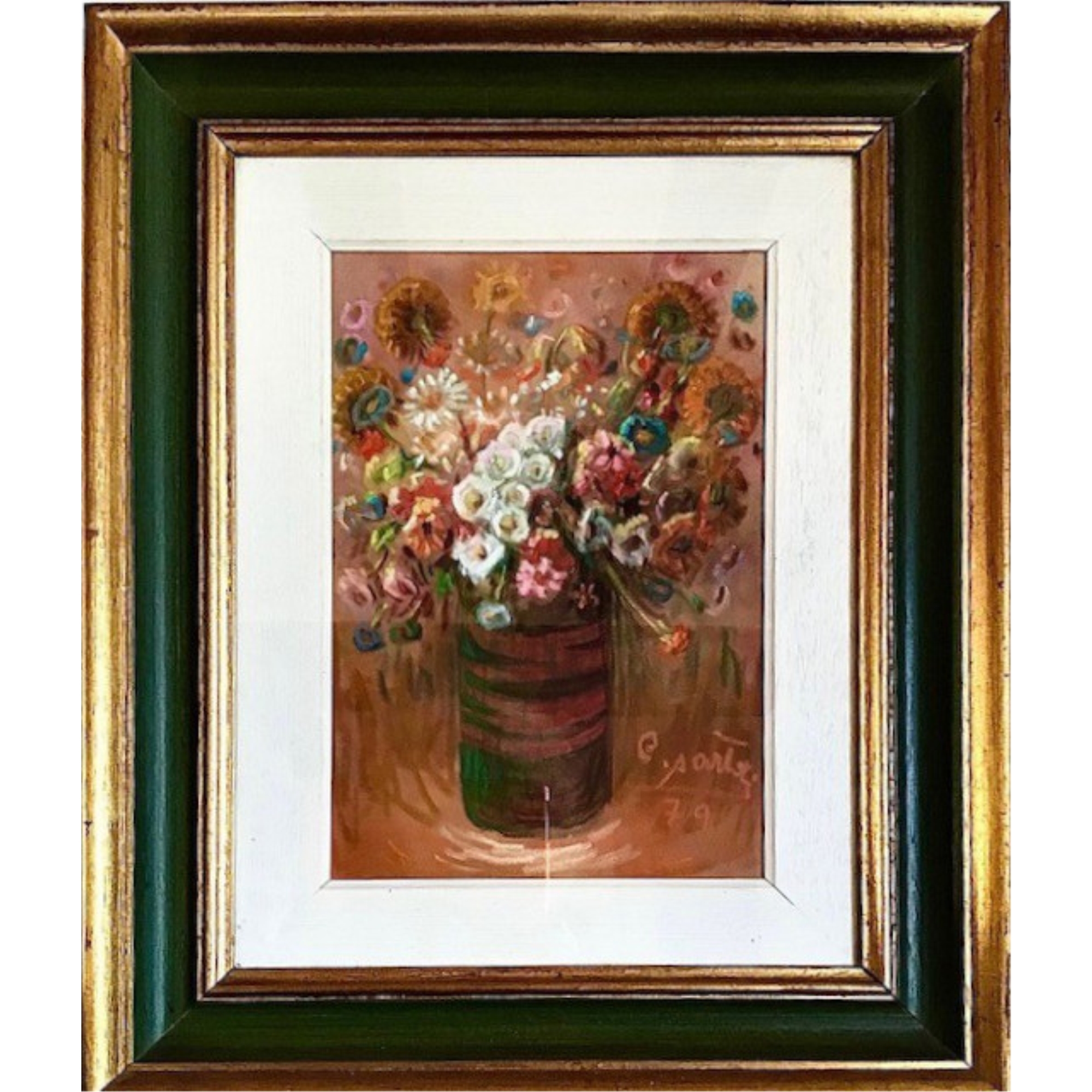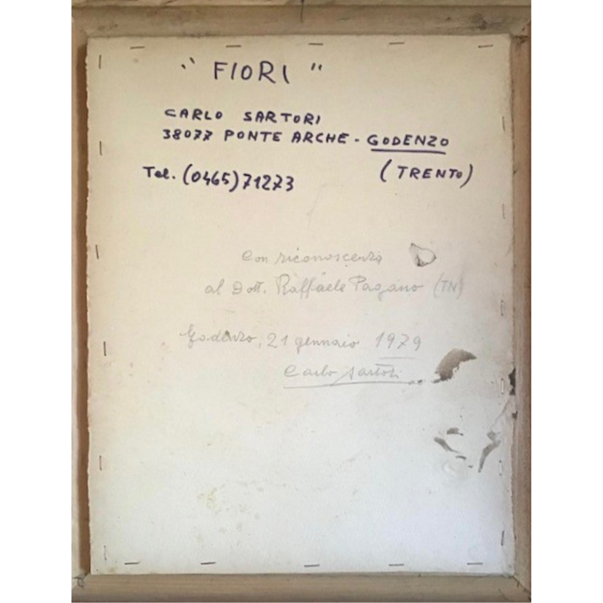 Carlo, Sartori, Fiori (1979), pastello, cm 30x20, firmato in basso a dx. Al retro, titolo e dedica autografa dell’autore. In cornice