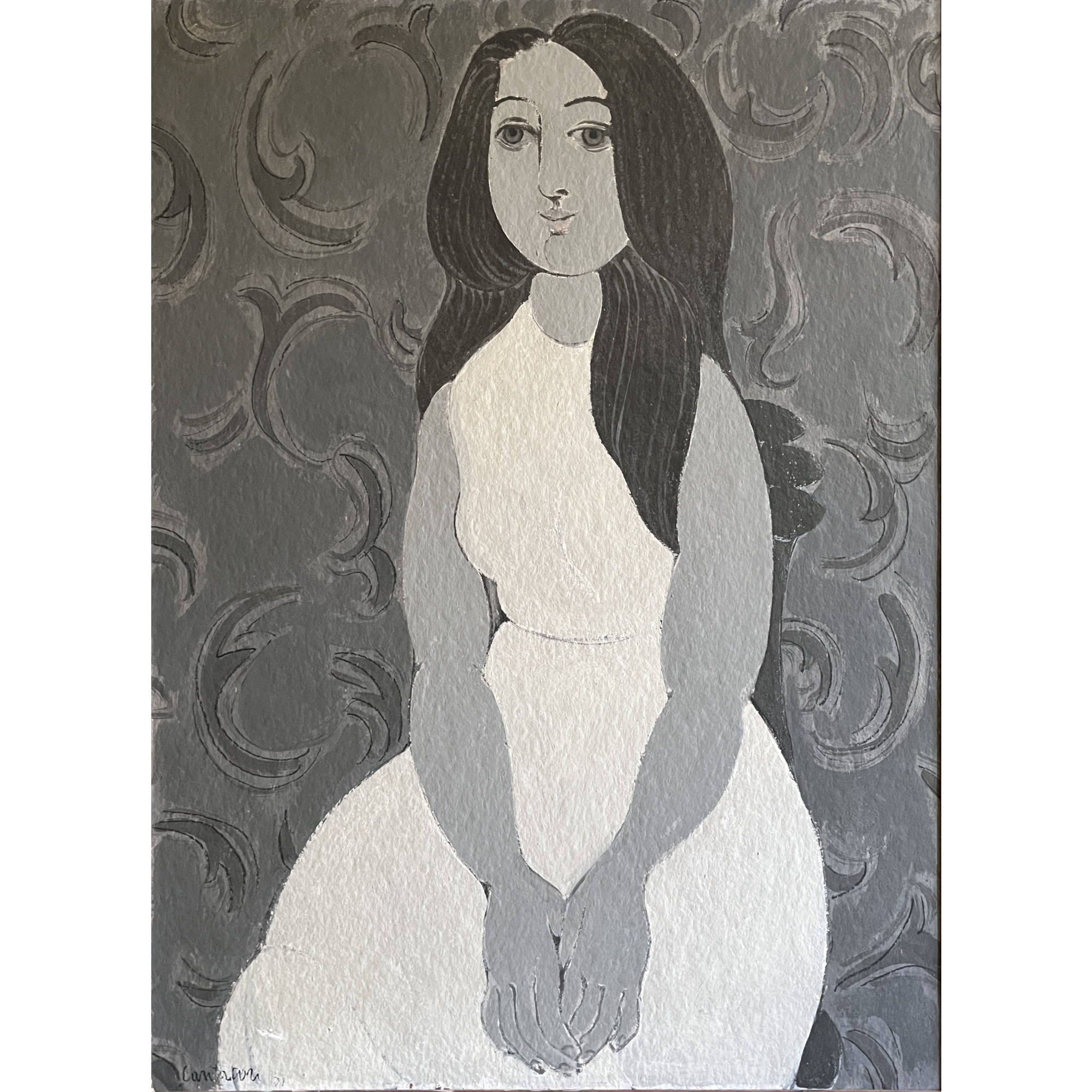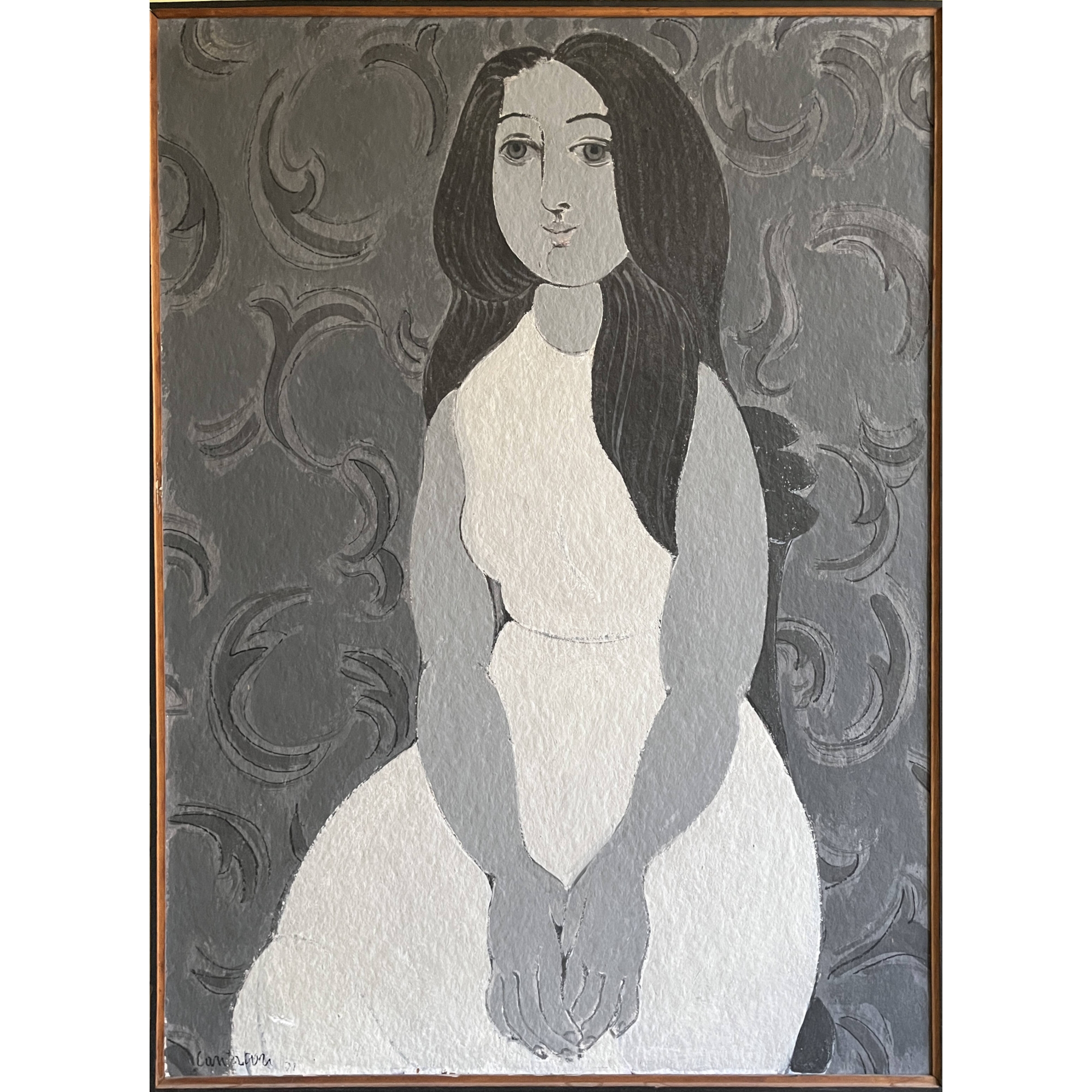 Domenico Cantatore, Figura in grigio, olio su cartoncino, cm 90x60. Provvisto di autentica su fotografia