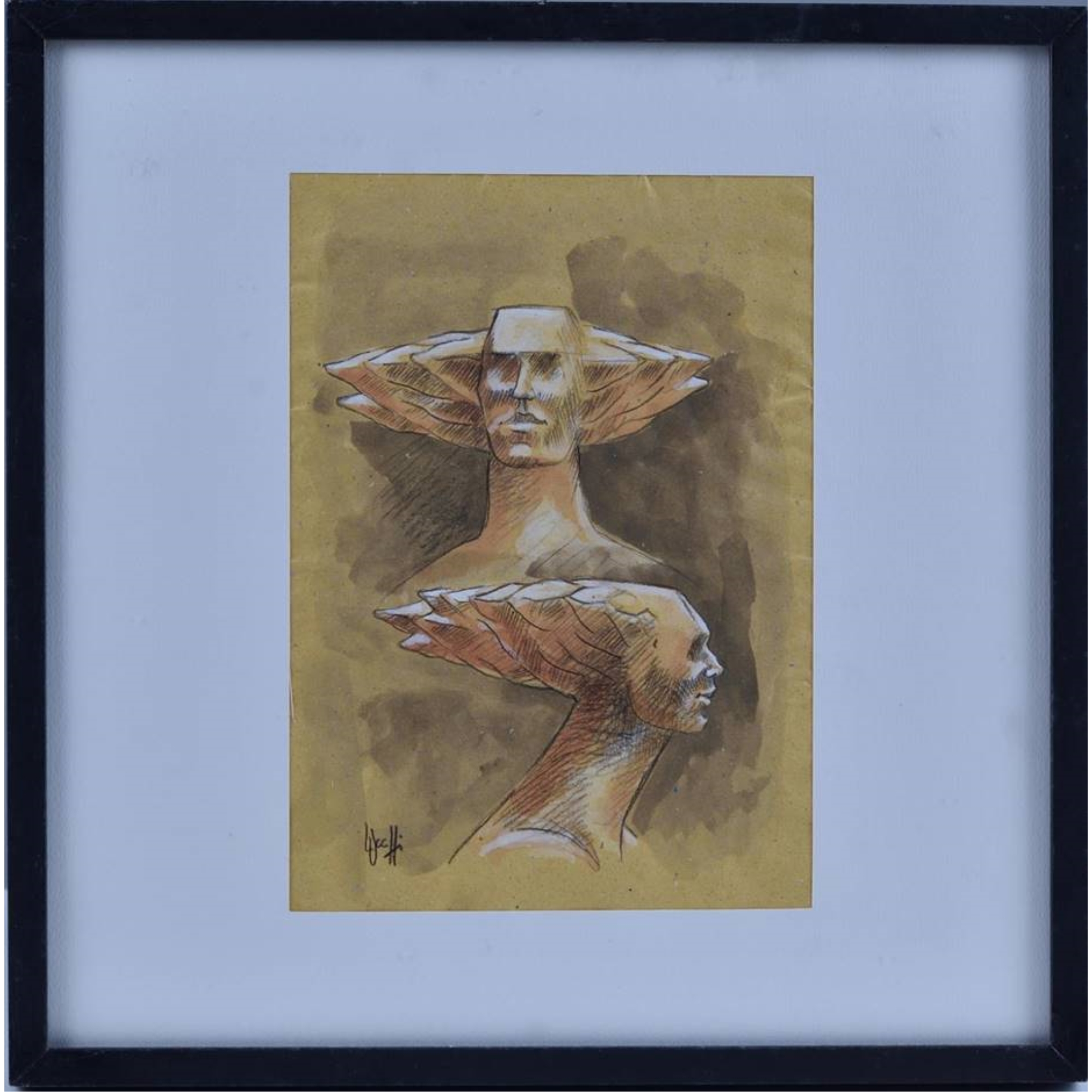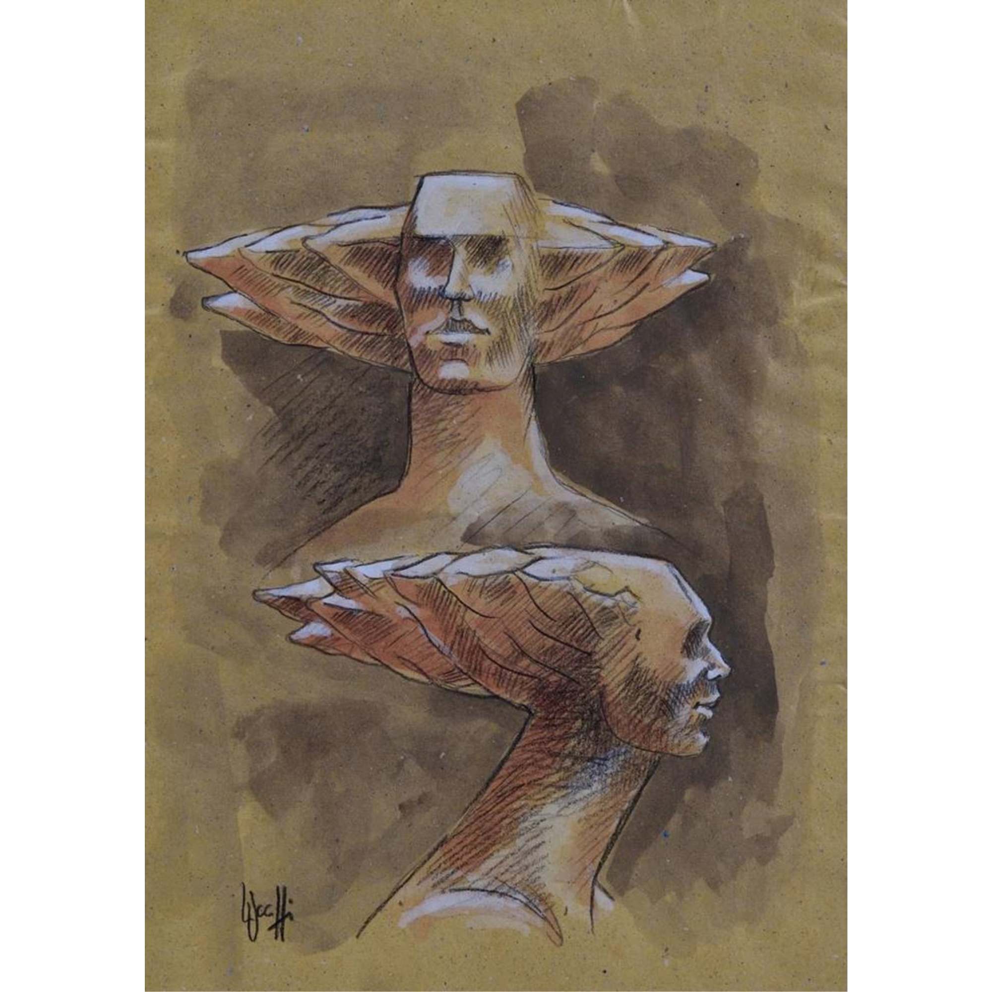 Bruno Lucchi, Studio Androgino (2000), disegno tecnica mista su carta paglia, cm. 28x20