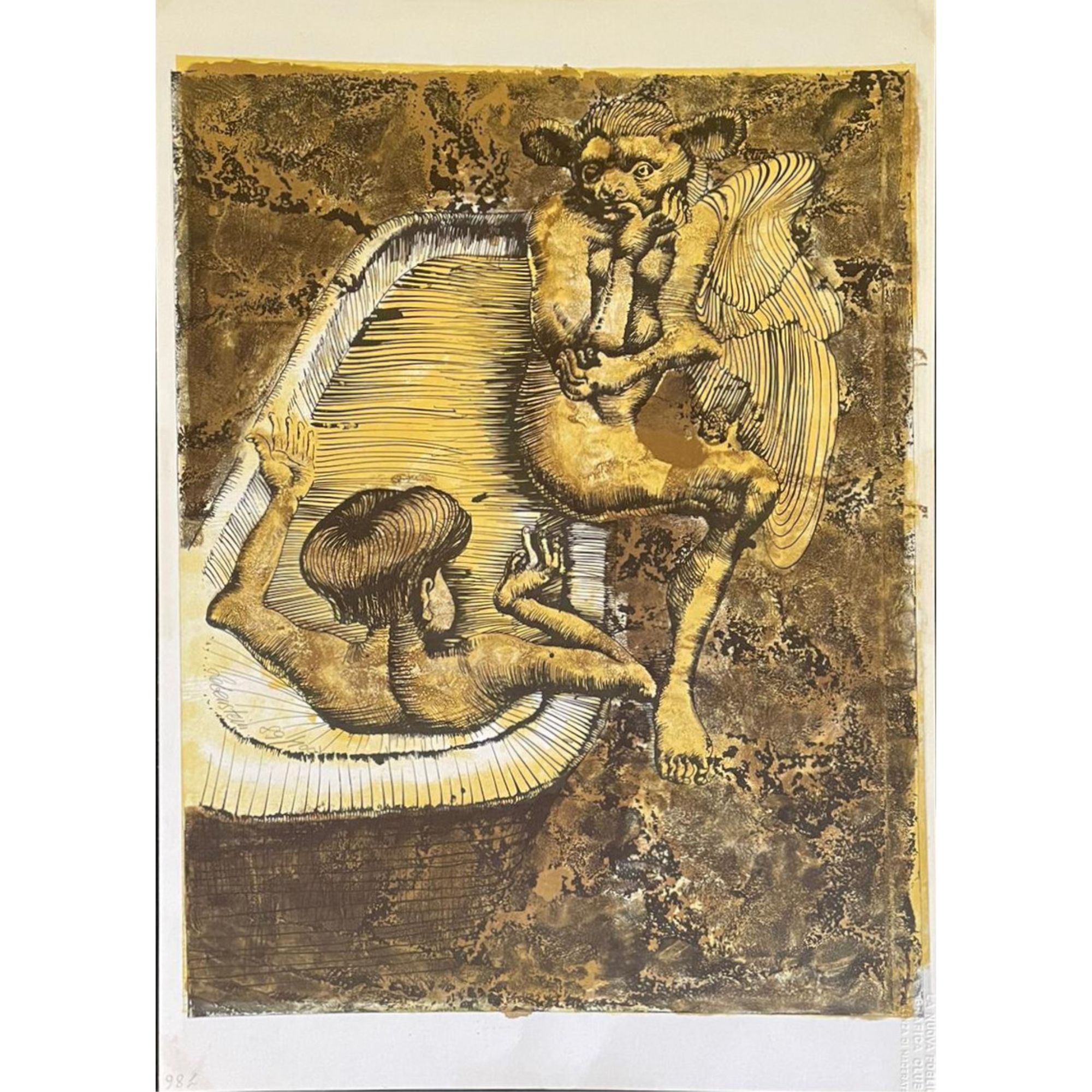 Jan Lebenstein, Diavolo e nudo, cm 50x35, litografia con timbro a secco