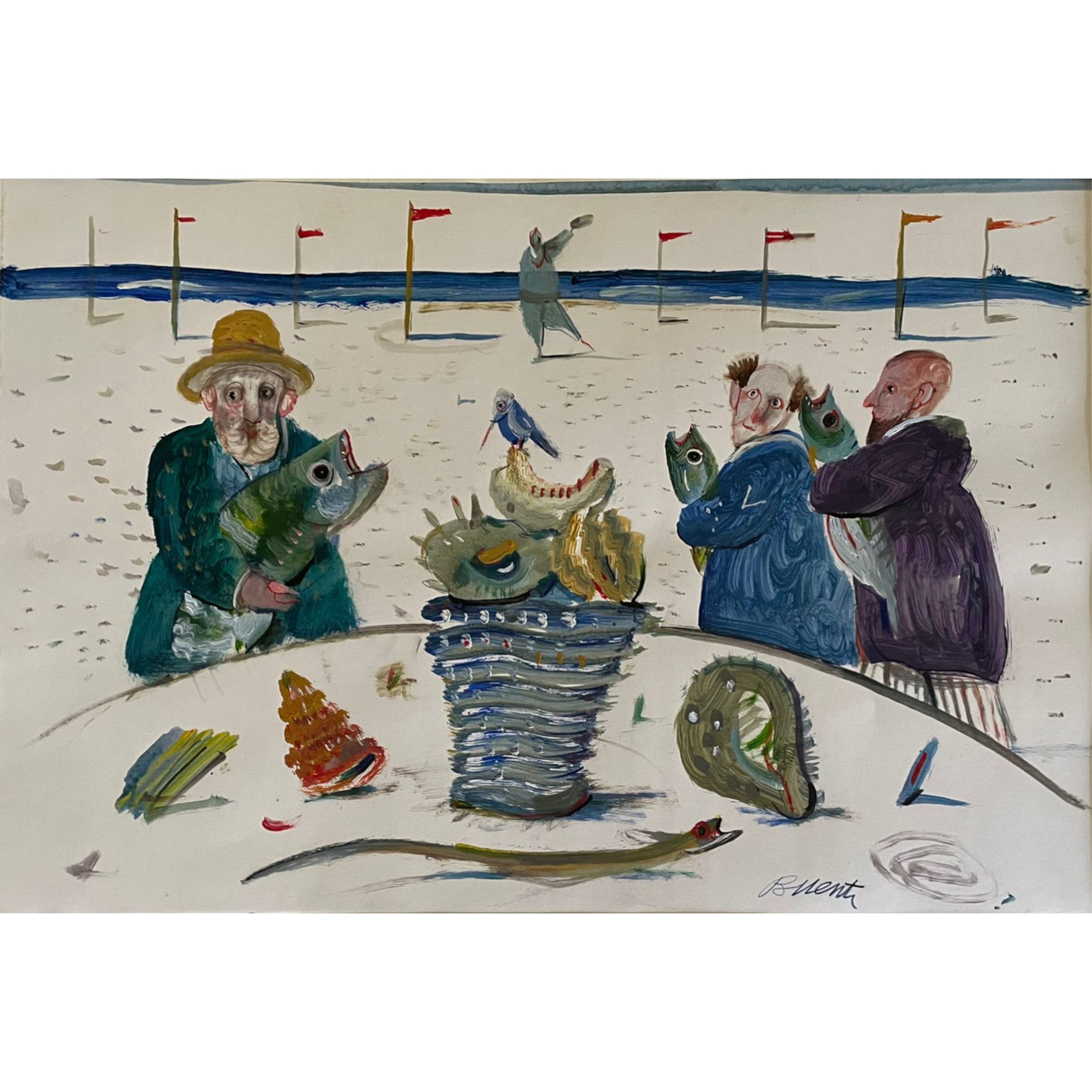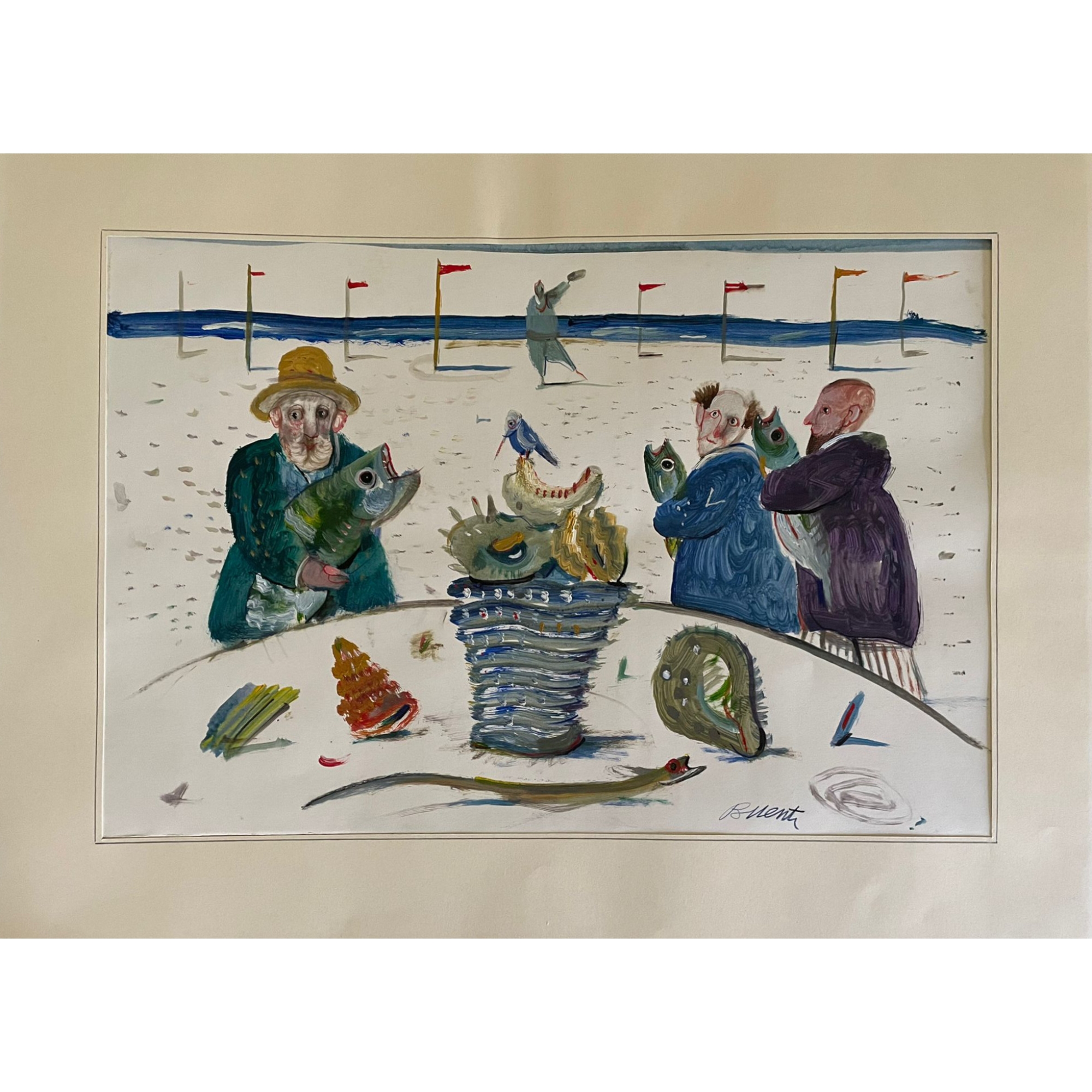 Antonio Possenti , Figure sulla spiaggia, tempera su cartoncino (1989), cm...