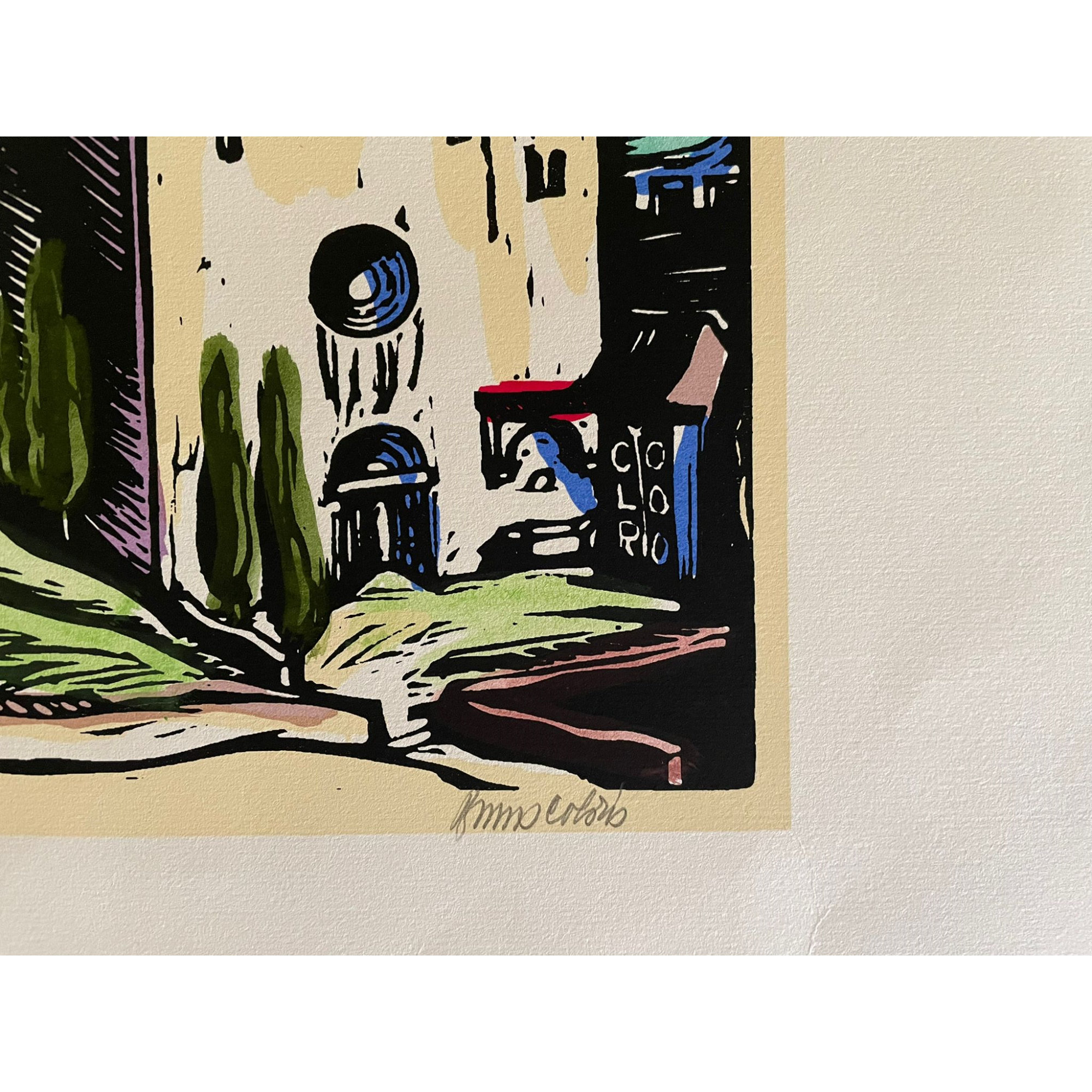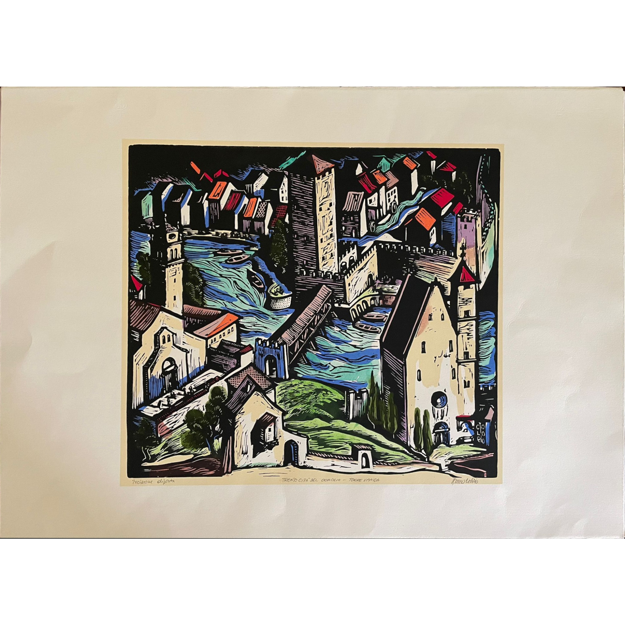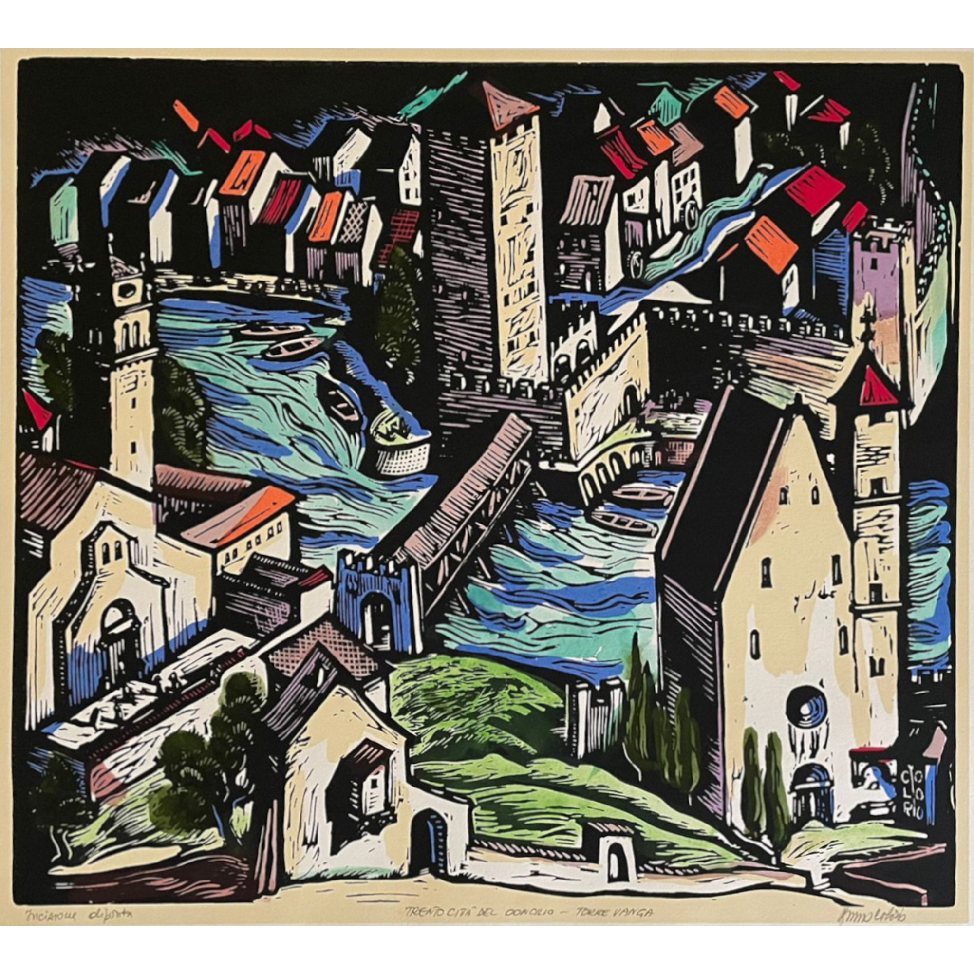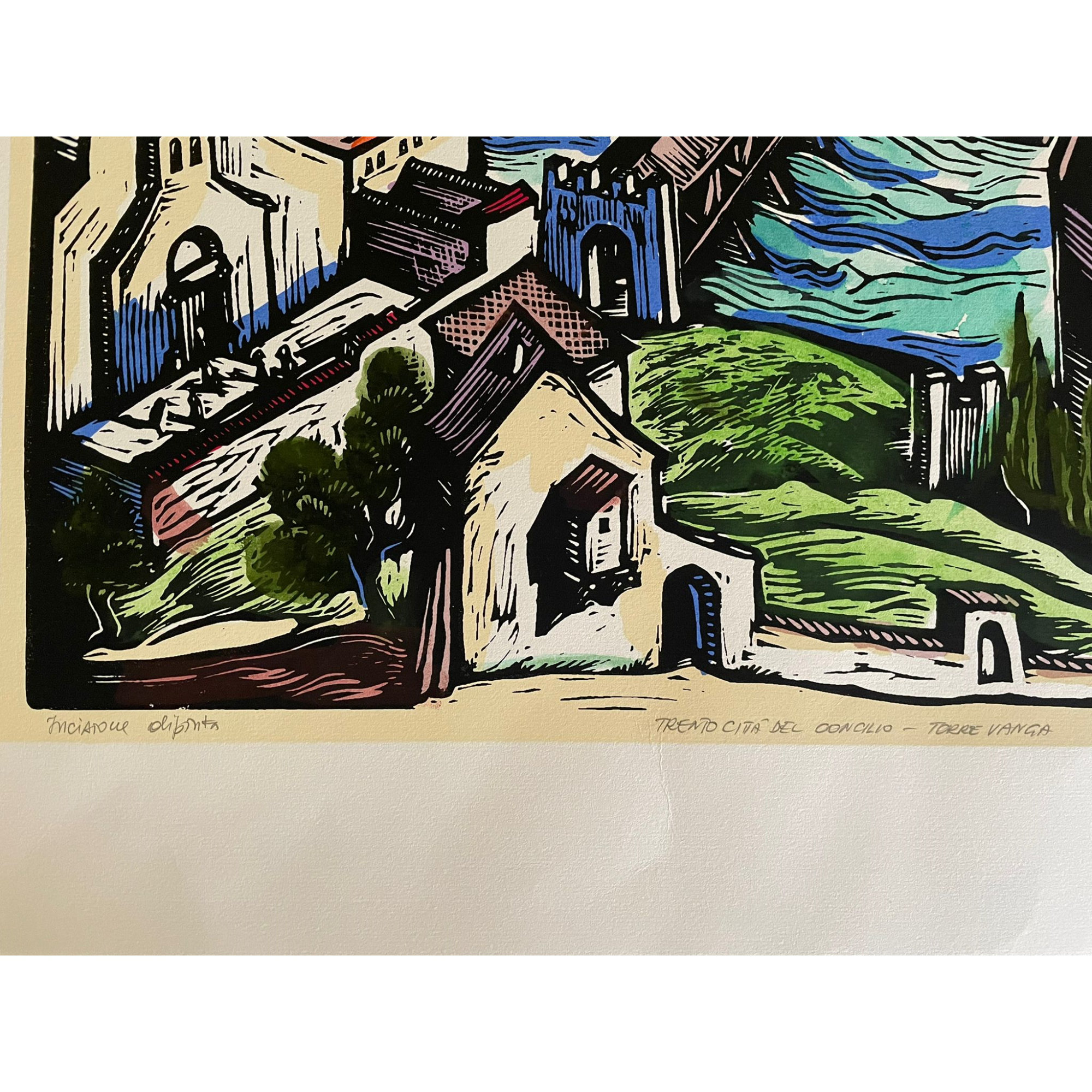 Bruno Colorio, Torre Vanga, xilografia dipinta, cm 50x70