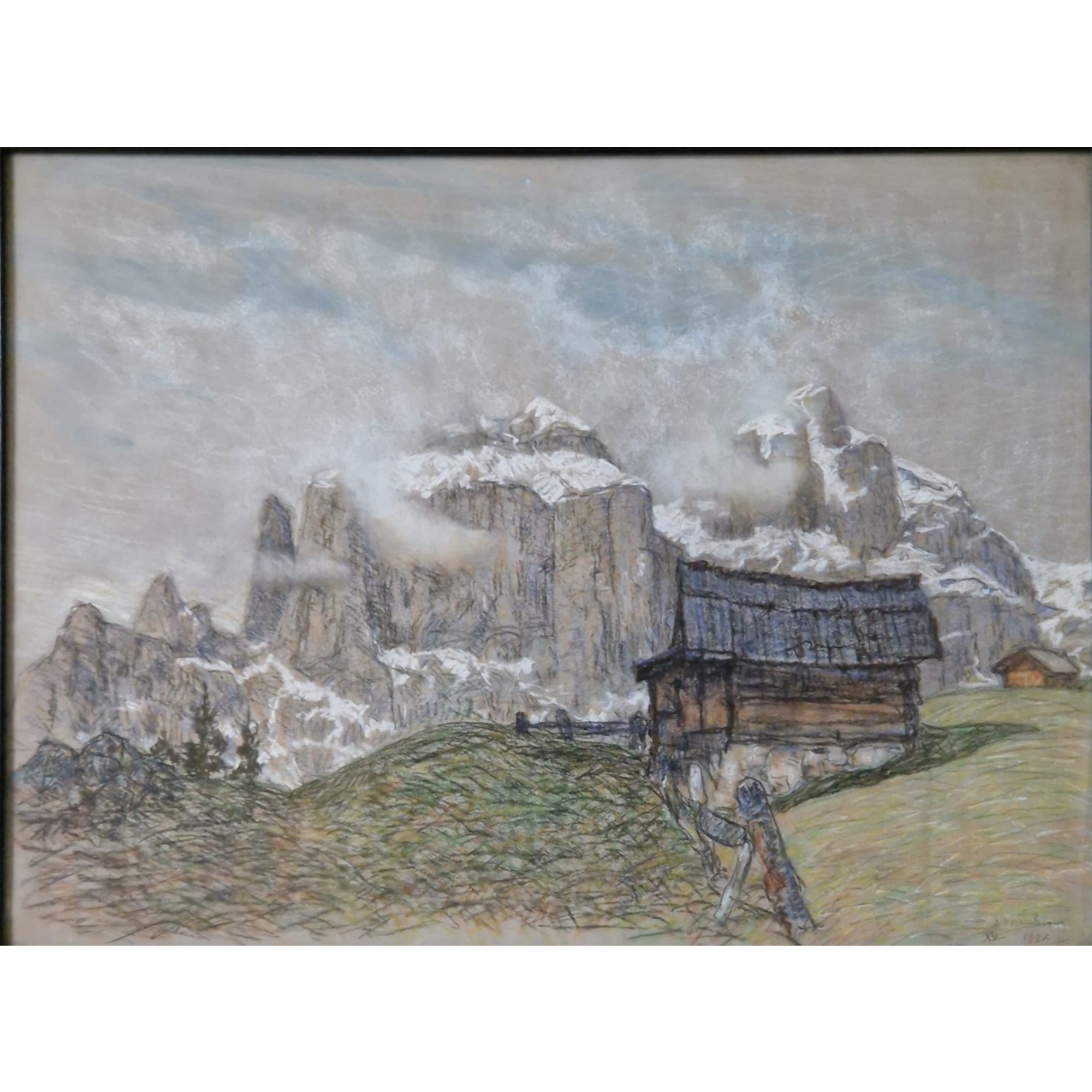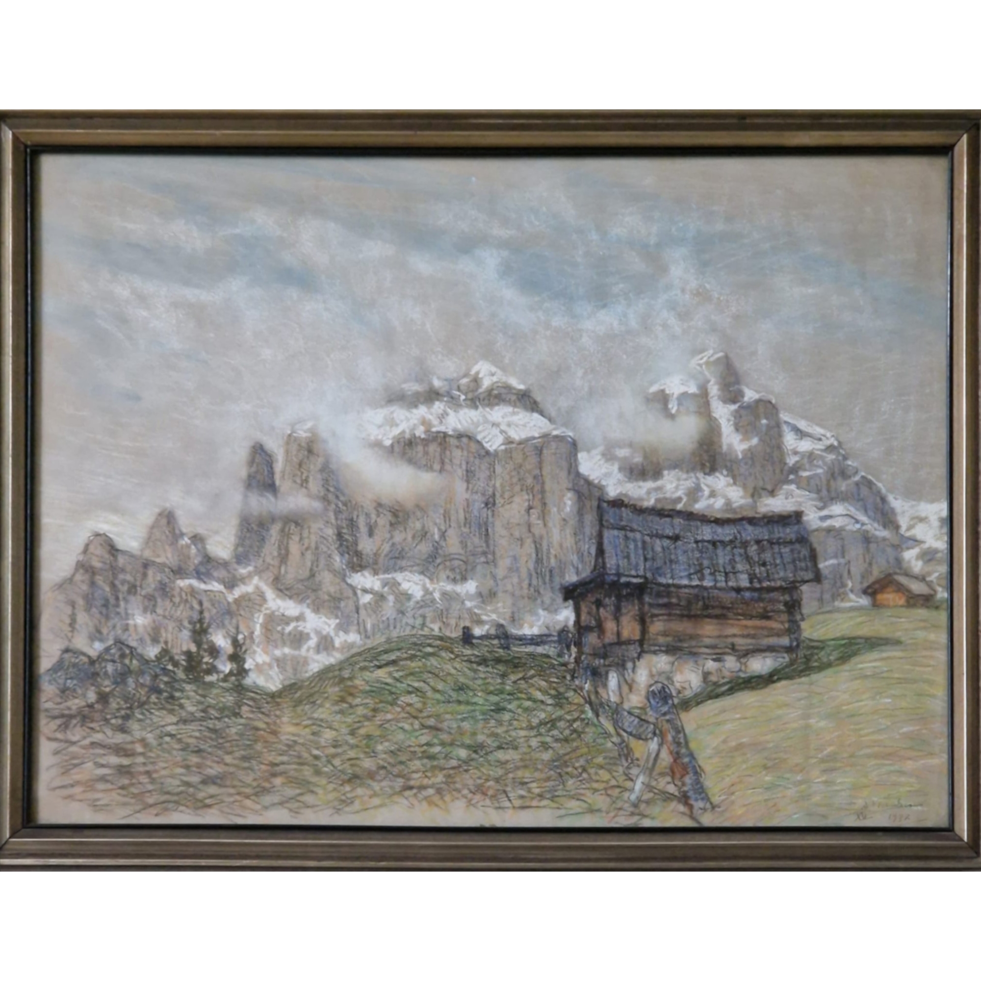 Luigi Vicentini, Paesaggio Alpino, pastelli su tavola, cm 67x47. In cornice