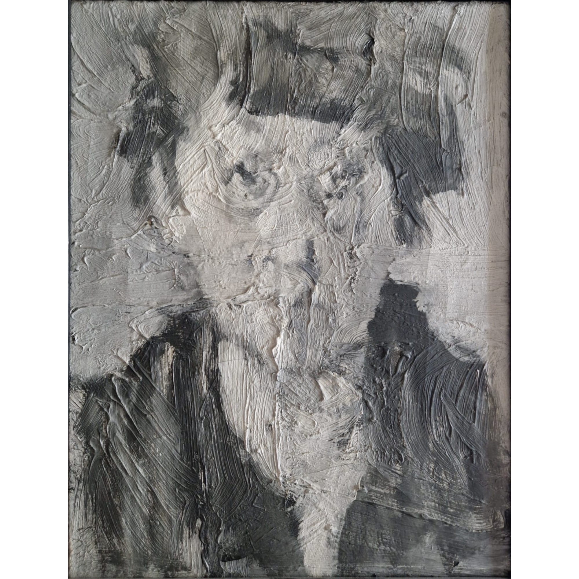 Paolo Vallorz, Ritratto (anni '60), olio su tela, cm 41x33, pubblicato sul catalogo della mostra Paolo Vallorz, la figura e una stanza di fiori fatta nel 2022 presso la casa degli artisti di Tenno. In cornice