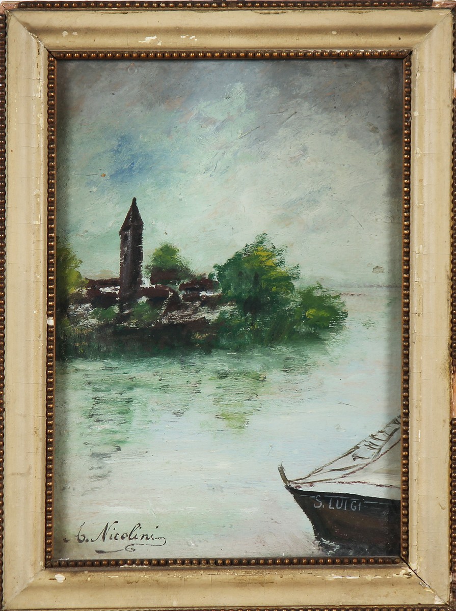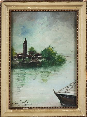 NICOLINI ALDO (n. 1934) S. Luigi. Olio su cartone pressato. Cm 18,00 x 25,00. Firma e titolo in basso. Cornice presente