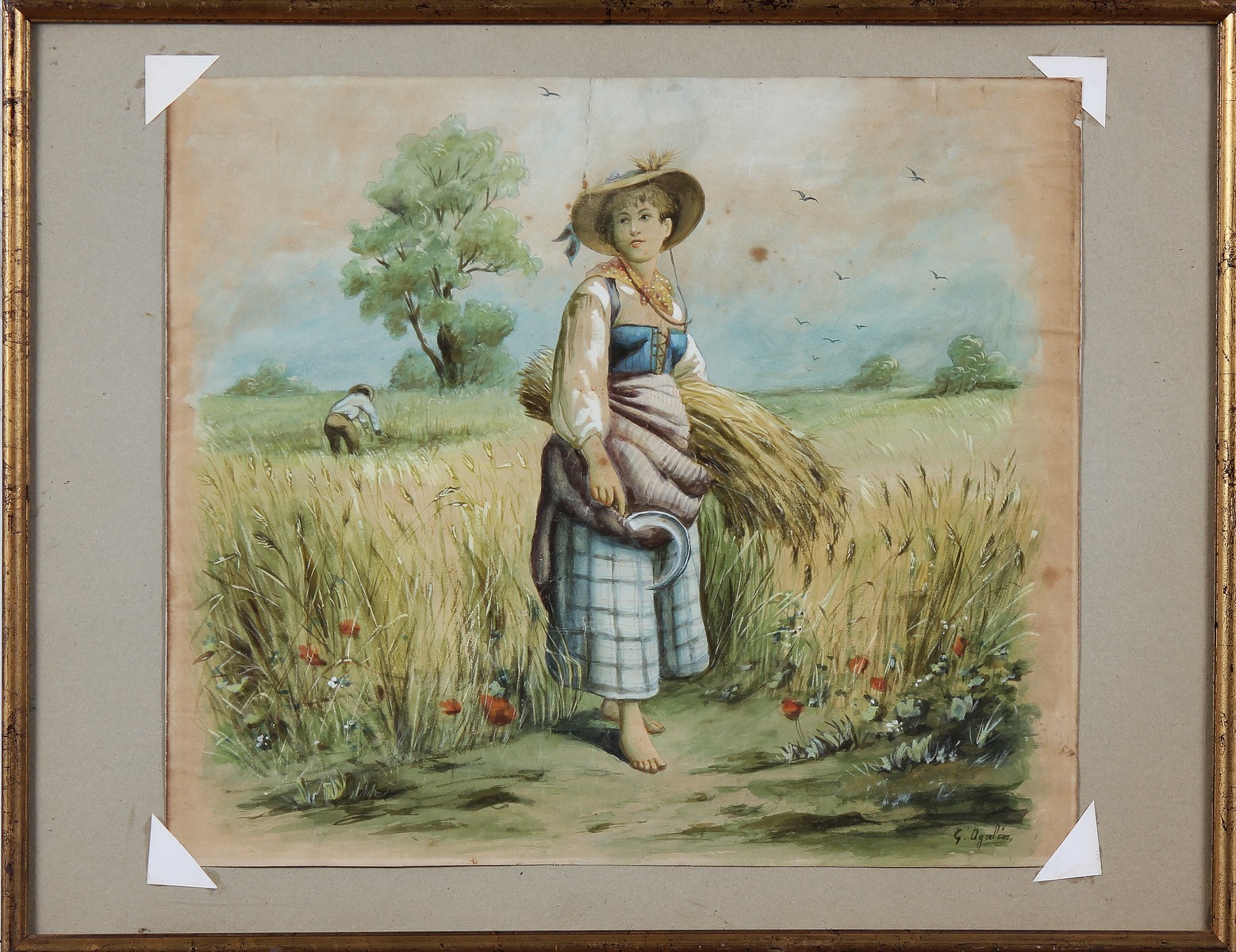 ANONIMO Contadina. Tecnica mista su carta. Cm 50,00 x 43,00. Firmato in basso...