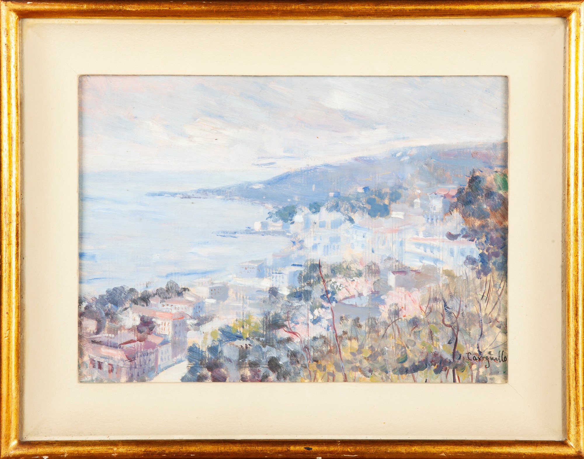 Sexto Canegallo (Genova 1892-Genova 1966) Veduta di golfo con città Olio su...